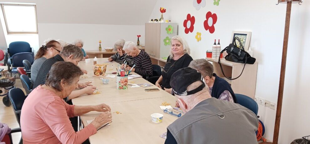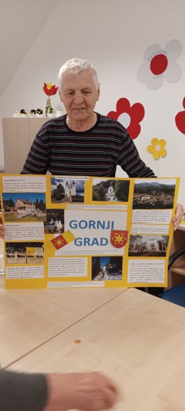 Ob sredah in petkih pri nas poteka aktivni dan, ki se ga naši stanovalci z veseljem udeležujejo. Pod vodstvom animatorke Špele namreč ustvarjajo, se družijo, smejijo in še veliko več. Vsakič nastanejo drugačni izdelki, vse od umetniških pa tudi poučnih. V prejšnjem tednu so ustvarjali 3D pobarvanke (s pomočjo koruznih zrn), pričeli pa so že z uvodom v zgodovinsko obarvan april. Tema meseca APRILA je namreč zgodovina krajev, katerega je seveda, kot se spodobi, otvoril naš Gornji Grad. Pogovarjali so se o nastanku mesta, prebivalcih, zanimivih lokacijah, na koncu pa so ustvarili še čudovit in poučen plakat.