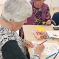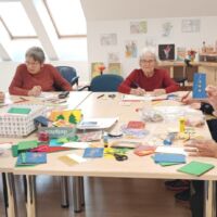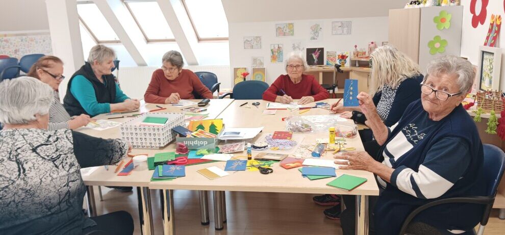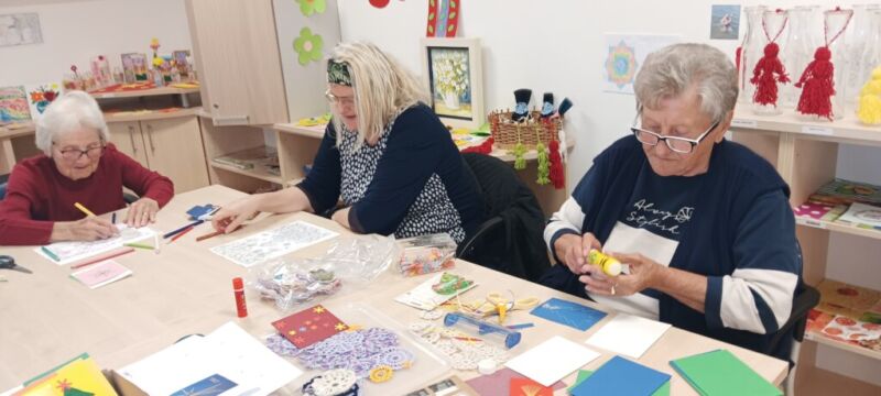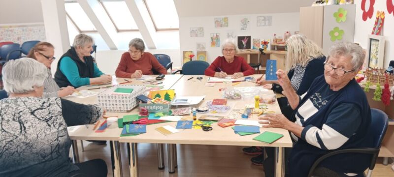 Na aktivnem dnevu so stanovalke skupaj z animatorko Špelo pričele izdelovati božično novoletne voščilnice.