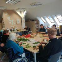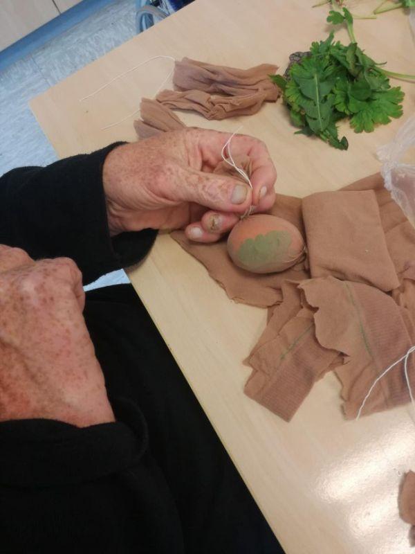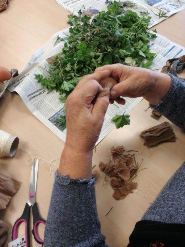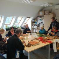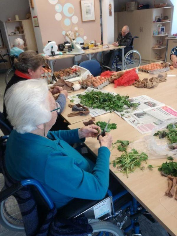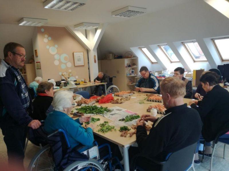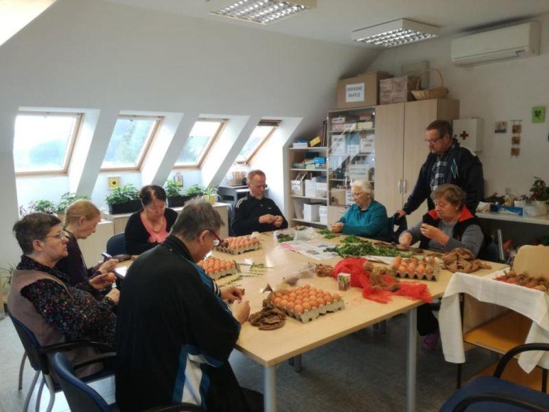 Skupaj s stanovalci smo barvali jajčka. Dan prej smo jih okrasili z zelenjem, jih zavili v »štumfe« in v žaklje od krompirja. Naše pridne kuharice so jih naslednji dan skuhale in nastale so najlepše velikonočne pisanke našega doma.