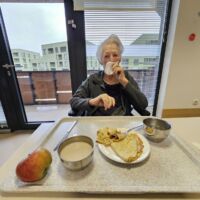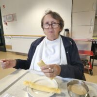 V Centru starejših Črnuče so stanovalci uživali v tednu palačink. V kuhinji so spekli omamno dišeče čapalinke, ki jih je nato animatorka Dragana razdelila med stanovalce. Na voljo je bila marelična marmelada. Poleg čapalink nikakor ni smela manjkati bela kava.