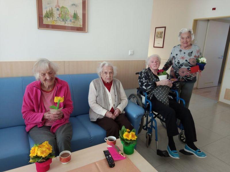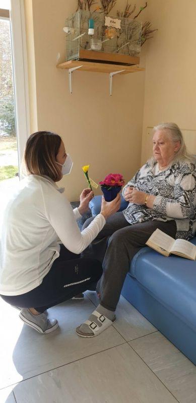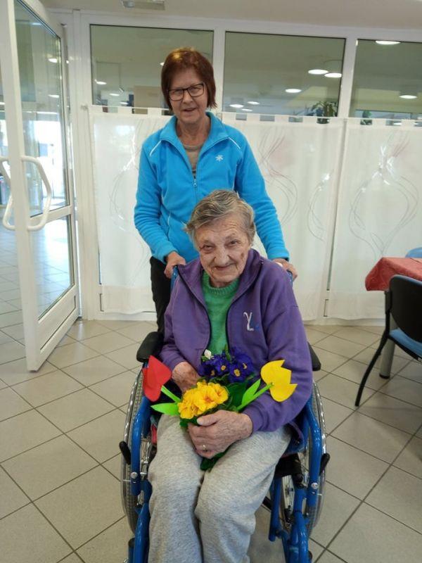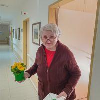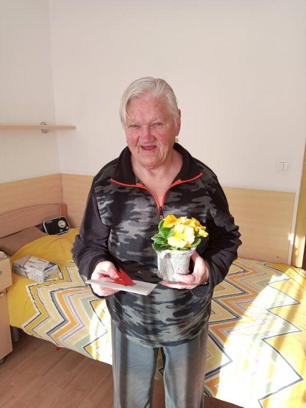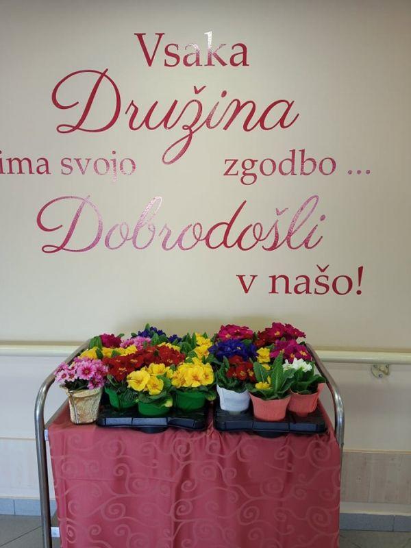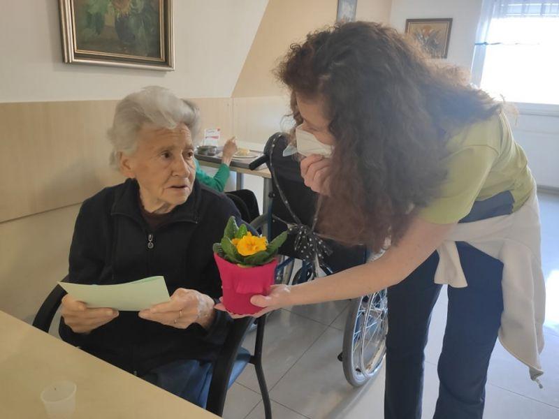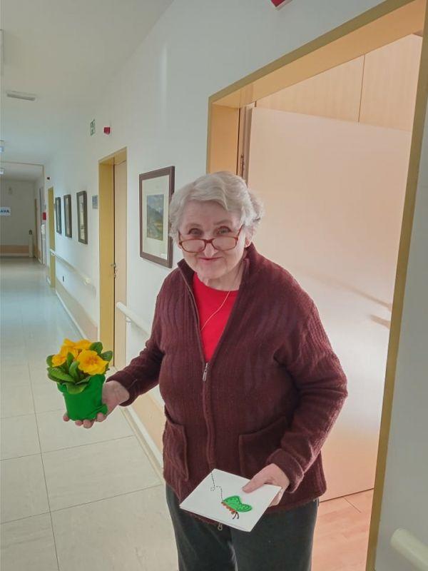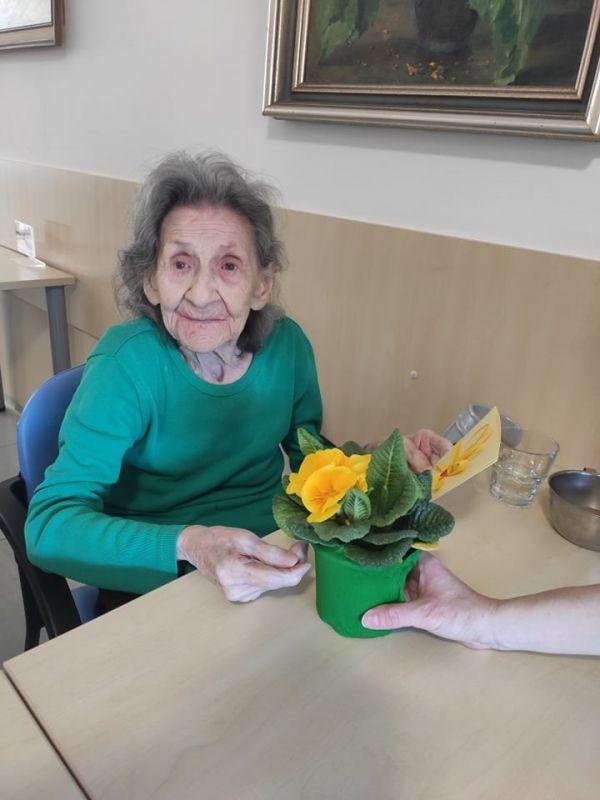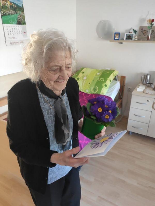 Ob dnevu žena smo obdarili naše stanovalke z več pozornostmi. Učenci pod mentorstvom učiteljice Mojce Mele iz OŠ Grahovo so izdelali čestitke in nam poslali glasbeni prispevek nastopajočih učencev, prav tako so stanovalke razveselili učenci OŠ Cerknica s čudovitimi čestitkami. Društvo podeželskih žena Klasje so za vse stanovalce pripravile sladko presenečenje. Družba Deos pa je vsaki stanovalki namenila pisane lončnice. Gospe so bile za podarjene pozornosti hvaležne in nekatere celo vidno ganjene.