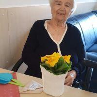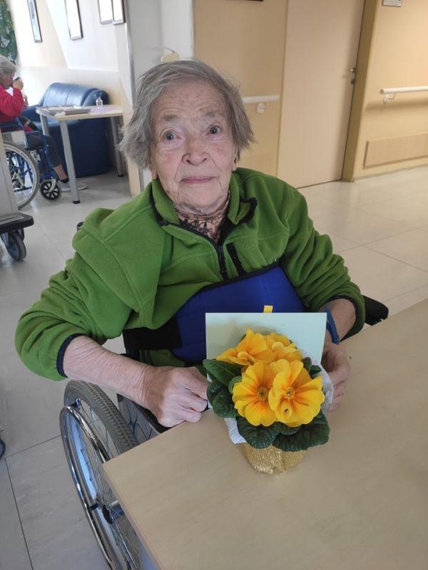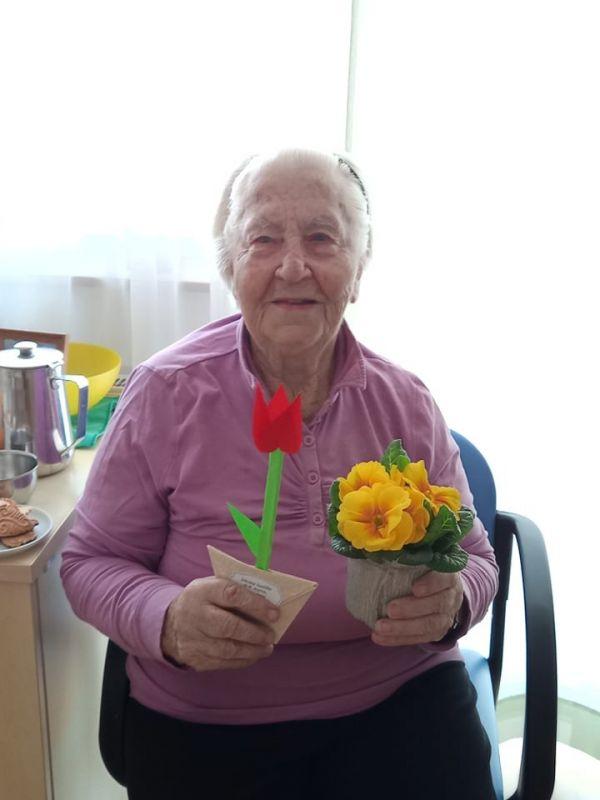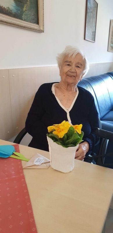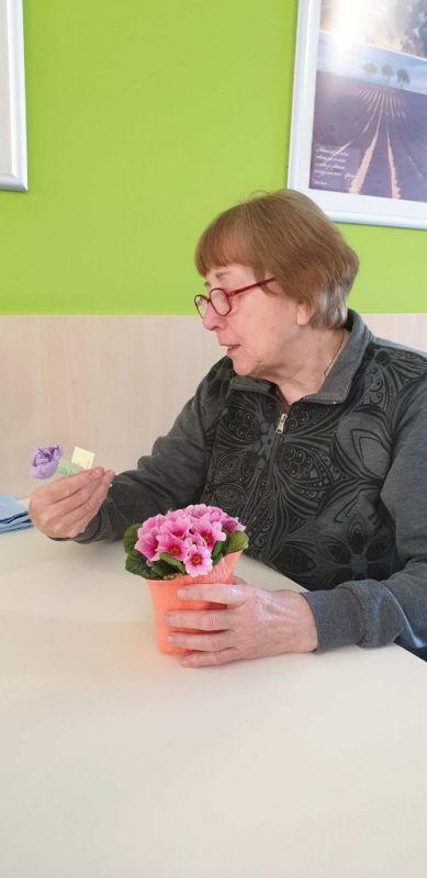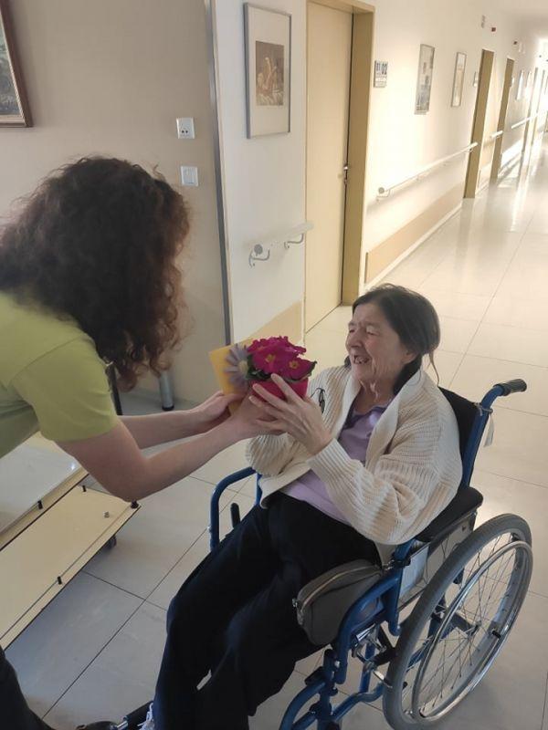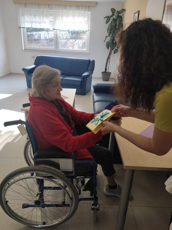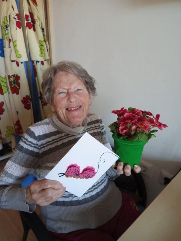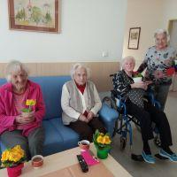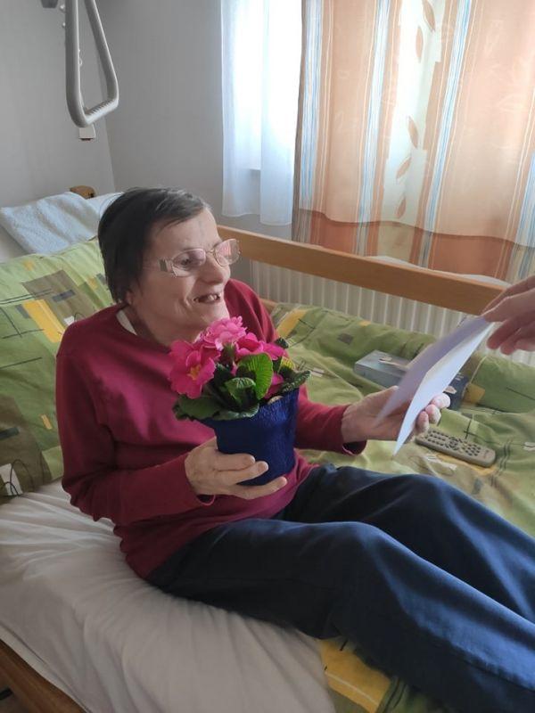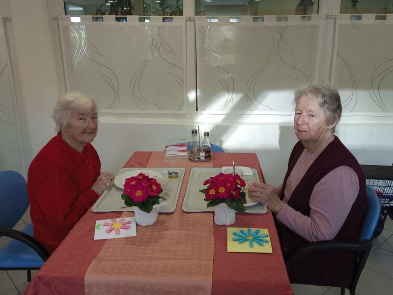 Ob dnevu žena smo obdarili naše stanovalke z več pozornostmi. Učenci pod mentorstvom učiteljice Mojce Mele iz OŠ Grahovo so izdelali čestitke in nam poslali glasbeni prispevek nastopajočih učencev, prav tako so stanovalke razveselili učenci OŠ Cerknica s čudovitimi čestitkami. Društvo podeželskih žena Klasje so za vse stanovalce pripravile sladko presenečenje. Družba Deos pa je vsaki stanovalki namenila pisane lončnice. Gospe so bile za podarjene pozornosti hvaležne in nekatere celo vidno ganjene.