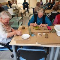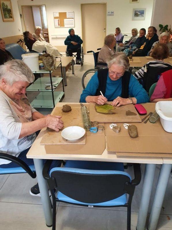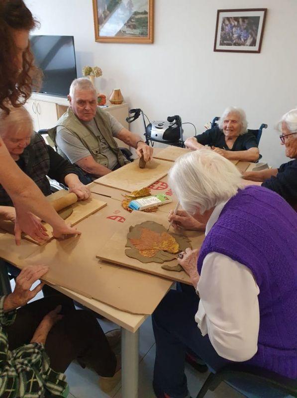 Na jesenski delavnici smo ustvarjali skledice v obliki jesenskih listov. Stanovalci, ki so se spoznali z glino so ob tem razvijali ustvarjalnost ter različne spretnosti in veščine. Ob izdelovanju smo prijetno poklepetali in se nasmejali. Izdelki se sedaj sušijo, nato bodo šli v peč za žganje keramike, končni izdelek pa bo zagotovo vse navdušil in prevzel.