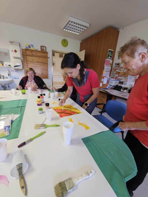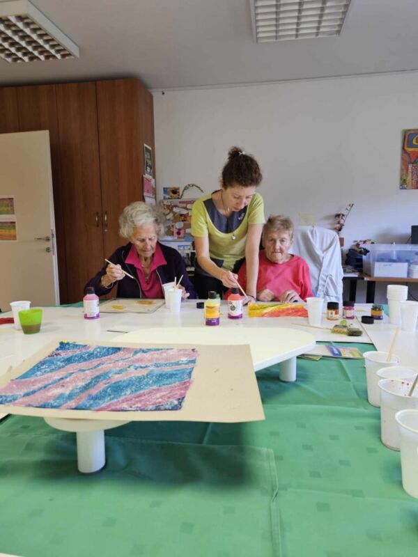 Delavnice slikanja na svilo so se udeležile stanovalke Centra, ko so zaključile program Aktiven dan za aktivno starost. Slikanje na svilo je nekaj res posebnega, saj ustvarjalnost ne pozna meja. Prav vsaka stanovalka je lahko ustvarjala na svojem kosu svilenega šala, rute ali robčka in ob tem privlekla na plan svojo kreativno plat. Ob slikanju na svilo so se zelo zabavale in uživale.
