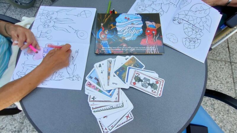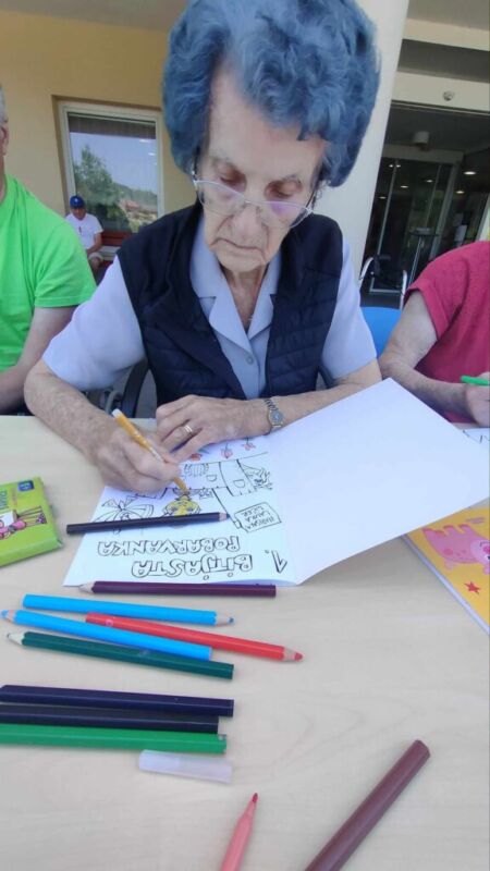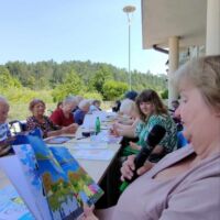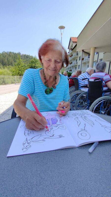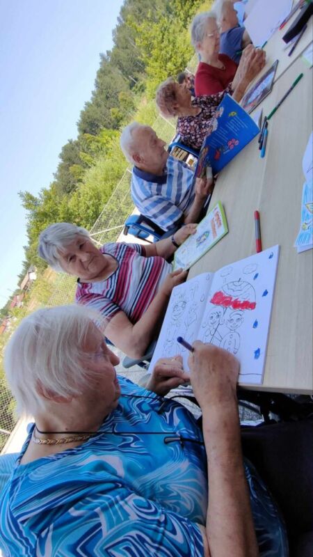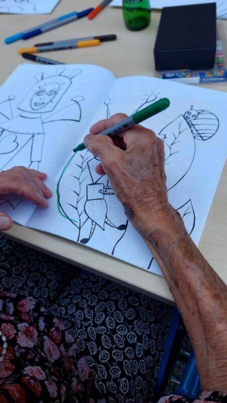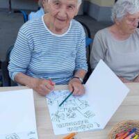 Danes so stanovalci in stanovalke DEOS, Centra starejših Cerknica skupaj z gospo Lauro Ličer, avtorico razstave, ki krasi stene uprave Centra, raziskovali skrivnosti Bitjastovzorčastega sveta. Ob klepetu in druženju so barvali Bitjastovzorčaste pobarvanke in tako preživeli dopoldan v malo drugačnem svetu.