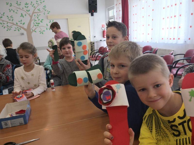 V okviru projekta Starejših berejo otrokom, otroci berejo starejšim smo medse povabili učence 1. in 2. razreda OŠ Frana Kocbeka Gornji Grad. Tokrat jim je stanovalka jim je prebrala pravljico Muca copatarica. Skupaj s stanovalci so si otroci izdelali papirnate copate.