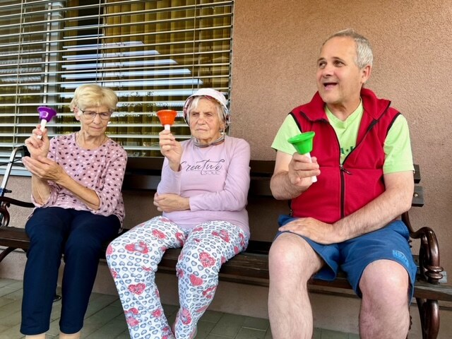 Ker se v našem centru tega zavedamo redno v večih oblikah izvajamo pomoč z glasbo. Pri receptivni terapiji se z izborom avtobiografske glasbe posvetimo vsem stanovalcem, ki so deležni te vrste obravnave. Odzivi so čudoviti, obujajo se stari spomini, stanovalci pa so vedno znova veseli prihoda terapevtke s slušalkami.