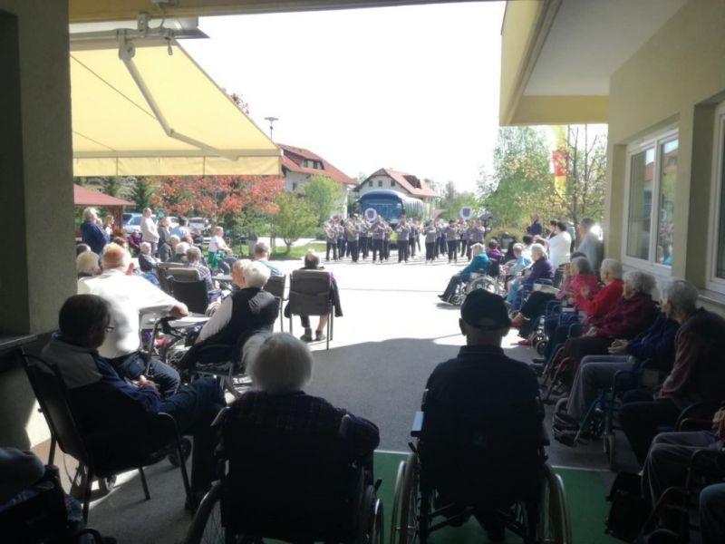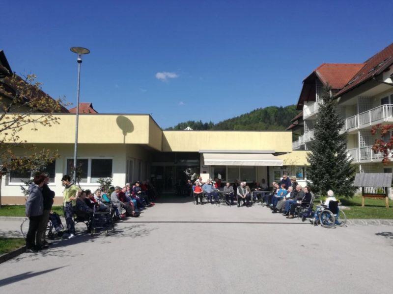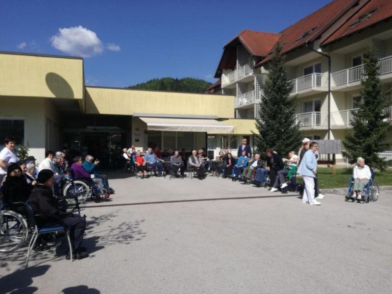 Na prvi majski dan nas je obiskala Godba na pihala Zgornje Savinjske doline in nam zaigrala budnico. Stanovalci so se številčno zbrali zunaj pred domom in čakali, da zaigrajo zimzelene melodije. Veseli smo bili obiska in se priporočali, da nas obiščejo tudi naslednje leto.
