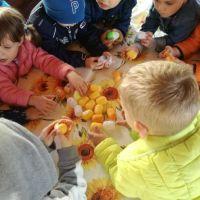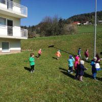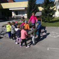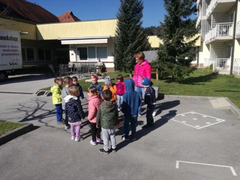 Obiskali so nas otroci iz vrtca Gornji Grad. Naša stanovalka jim je najprej prebrala pravljico Mandi, velikonočni zajček, nato pa se je začelo iskanje velikonočnih jajčk. Dve skupini sta jajčka iskali zunaj našega centra, ena skupina pa je odšla na varovano enoto. Ko so našli vsa jajčka, smo jih prešteli, če nam slučajno kakšno jajce ne manjka. Na koncu smo otroke razveselili še s čokoladnimi jajčki, s katerimi so se veselo posladkali.