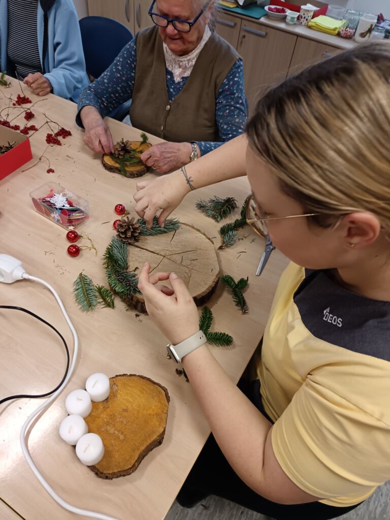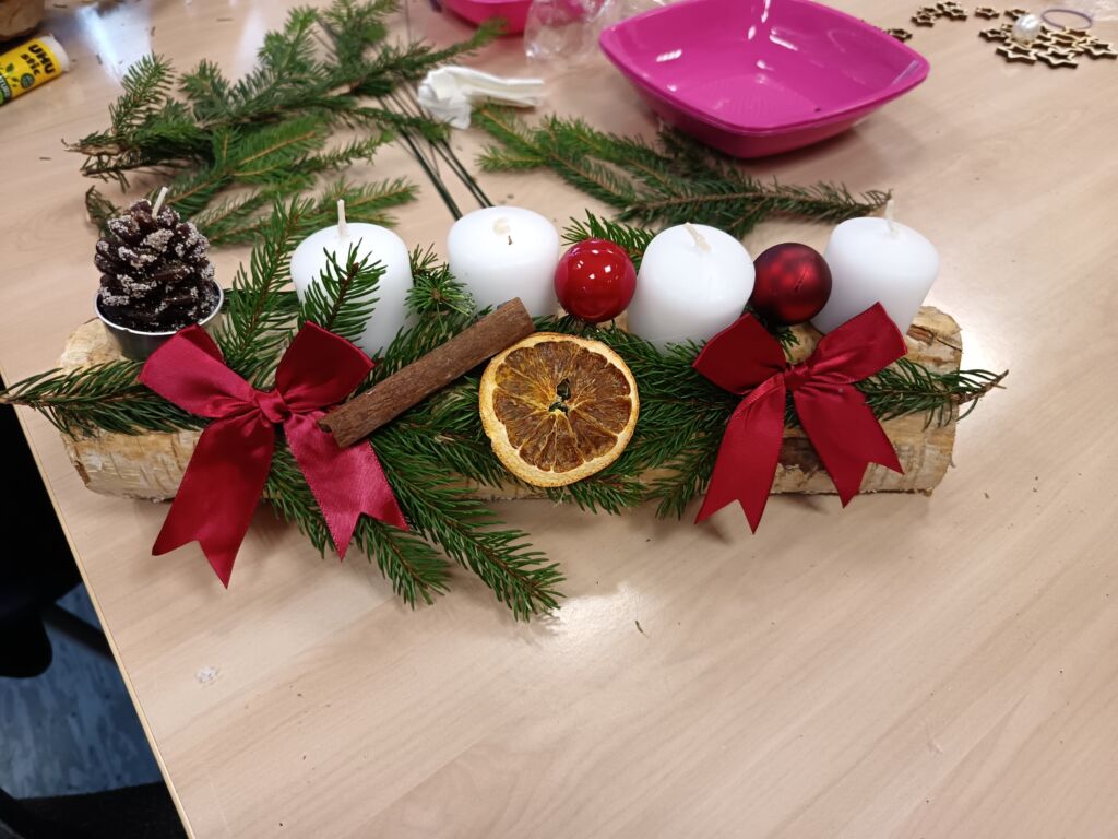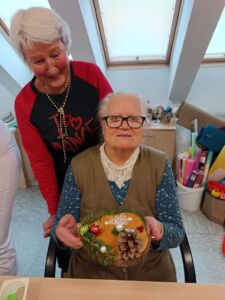 24. november 2025 IZDELOVANJE ADVENTNIH VENČKOV DELOVNA TERAPIJA Prva adventna nedelja je že za ovinkom, zato smo v Centru izdelovali adventne venčke🕯️, ki bodo krasili Center in domove zaposlenih. Vsak unikaten po svoje in narejen z ljubeznijo in veliko preciznosti 🎀. Nazaj