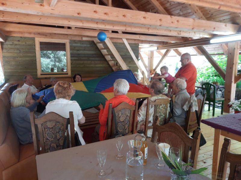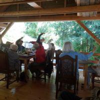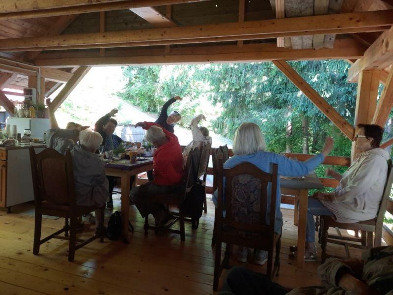 Naša animatorka je na samem izletu poskrbela tudi za ogrevanje glasilk s petjem. razgibali smo se s telovadbo ter žoganjem. Na žoganju se nam je pridružila najmlajša članica družine Cilenšek. Družina Cilenšek je poskrbela, da smo si privoščili zdrav slovenski zajtrk. Kaj vsebuje? Privoščili smo si: kruh, maslo, domač gozdni med, jabolko in domač čaj iz domačih zelišč.