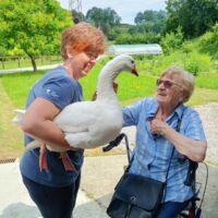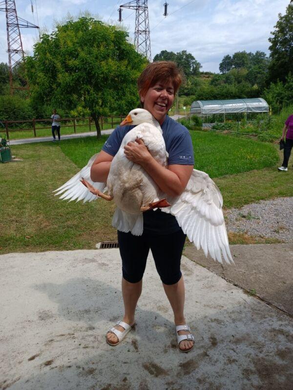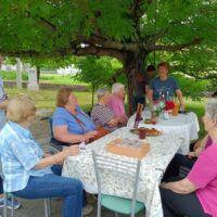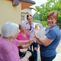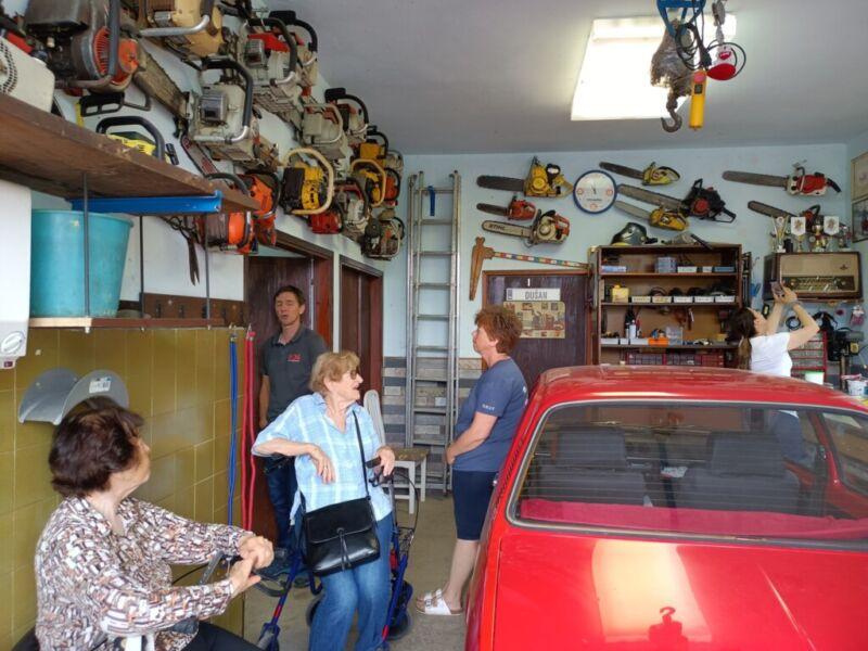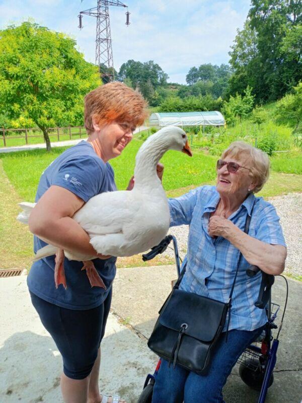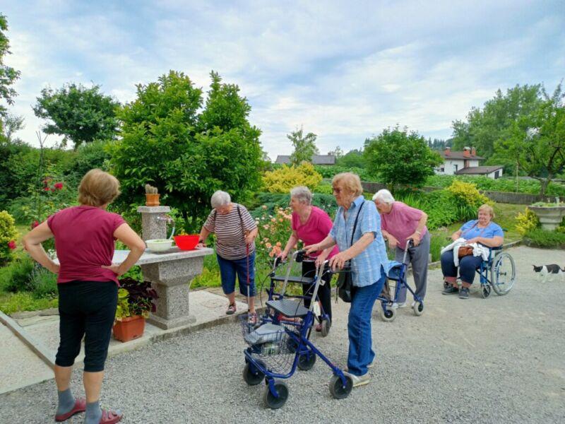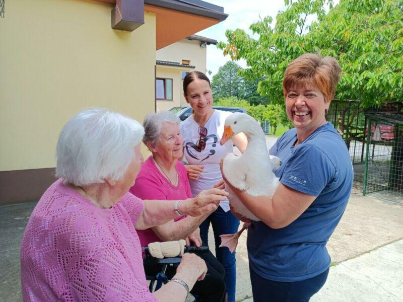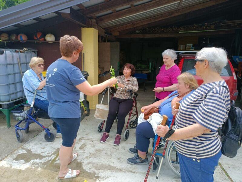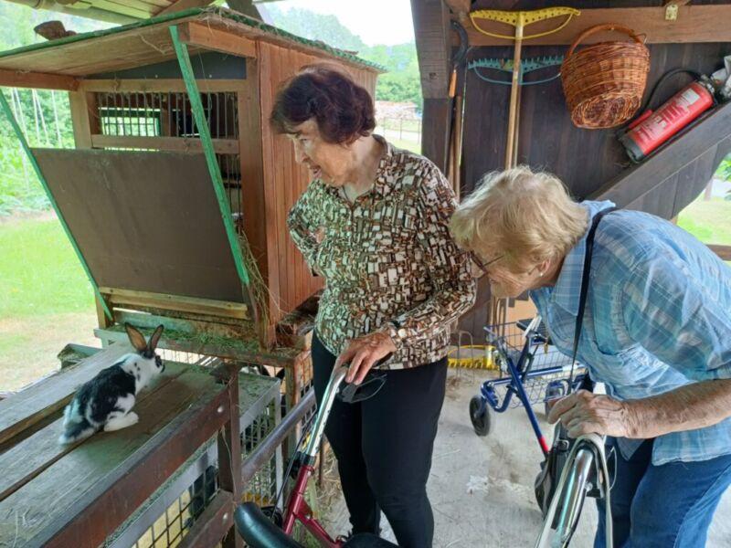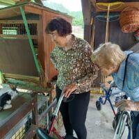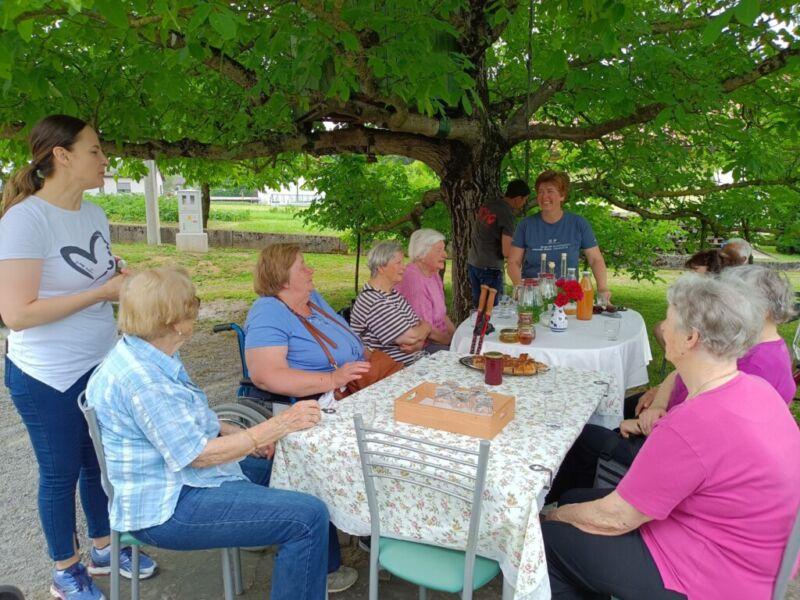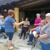Danes so stanovalke DEOS Centra starejših Cerknica odšle na izlet v neznano! Odšle so na obisk na kmetijo Frank, kjer so imele možnost pokušine domačega medu, žganja in pekovskih izdelkov. Po druženju je sledila predstavitev in ogled kmetije, ogled zbirke motornih žag in starodobnika (tudi od znotraj) ter živali na kmetiji. Božali so zajce, piščančke, mačko in gos. Sprehodili so se tudi po zeliščnem in zelenjavnem vrtu, preverili plodove v sadovnjaku, predvsem pa izkoristili lepo vreme. Spodbujali so tudi spomin, s prepoznavanjem zelišč. Lahko rečemo, da je bil izlet uspešen. Izlet na kmetijo Frank je potekal v okviru skupnega projekta Kmetija kot terapevtski prostor, ki se sofinancira iz EKSRP.
