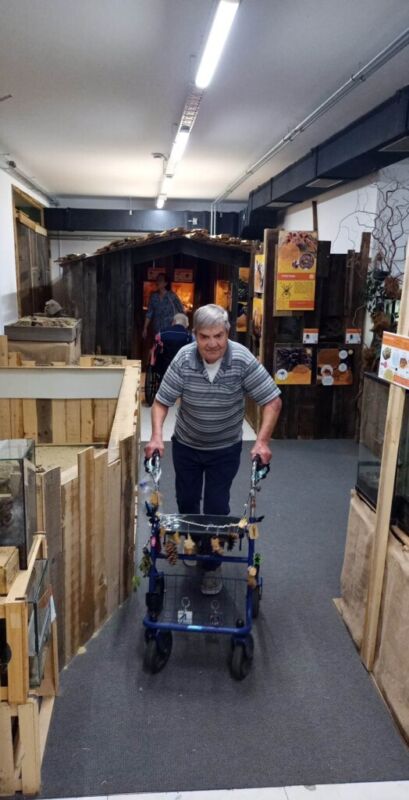 Na sončno dopoldne smo se s stanovalci podali na izlet v knežje mesto, Celje. Odločili smo se, da obiščemo tropsko hišo, kasneje pa si v centru mesta, v hotelu Evropa privoščimo še kavico in kaj sladkega. Ko smo vstopili v tropsko hišo nas je prijazno pozdravila in sprejela študentka, ki na nas je opremila z informacijami kdo vse živi v tropski hiši, kakšna so pravila in nato se je naše raziskovanje začelo. V terarijih smo našli različne pajke, žabe, kače, miši, ježke, kuščarje,… Največji vtis pa so na nas pustile nagajive opice, ki so izvajale različne akrobacije. Dve obročkastorepi maki opici pa sta celo uživali v naših dotikih. Po dobri uri in pol smo polni vtisov, odšli na kavico, kjer so nas zelo lepo sprejeli. Prijetno utrujeni smo se varno vrnili v Zimzelen.