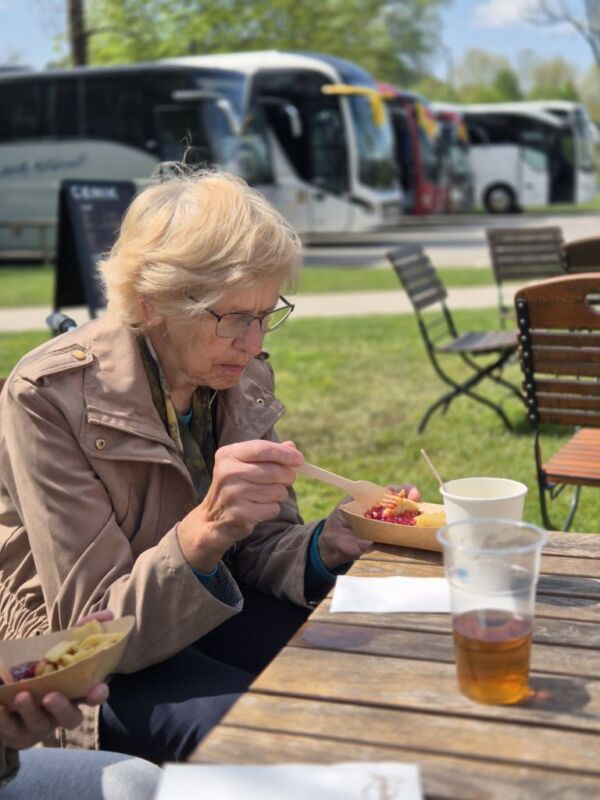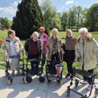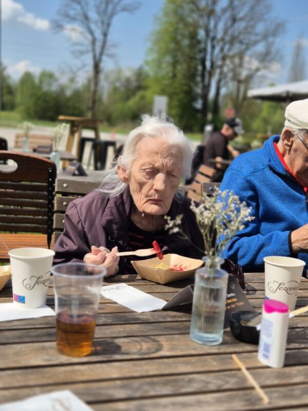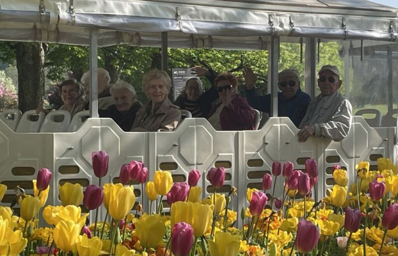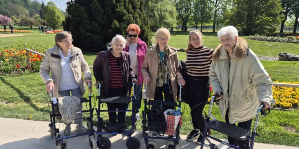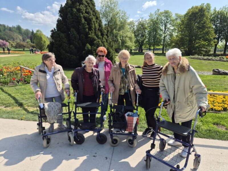 Sprehodili smo se med cvetočimi drevesi in urejenimi potmi, si ogledali park tudi iz vlakca, ki nas je popeljal skozi čudovito pomladno kuliso in nam omogočil še en lep pogled na razcveteno naravo. Dan smo zaključili v prijetnem vzdušju ob kavici in slastnem šmornu, kjer smo skupaj praznovali rojstni dan ene izmed naših stanovalk. Bil je dan, poln lepote, smeha, topline in drobnih trenutkov, ki ostanejo v spominu še dolgo po tem, ko se izlet konča.