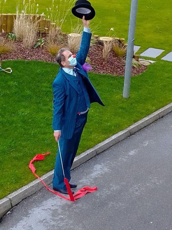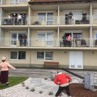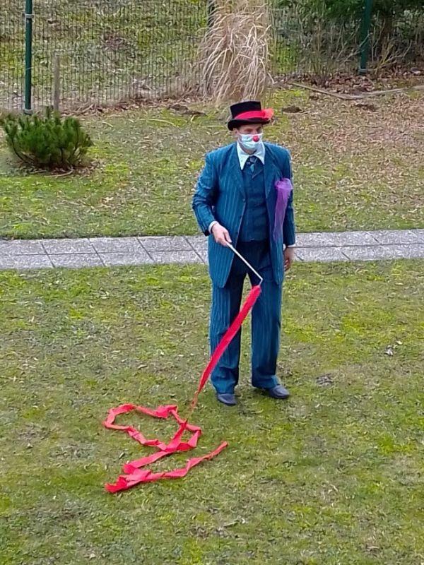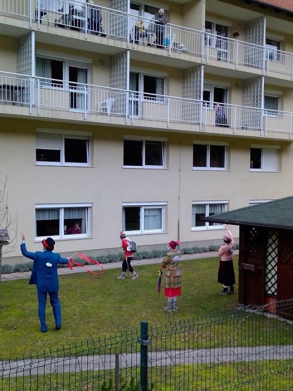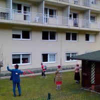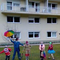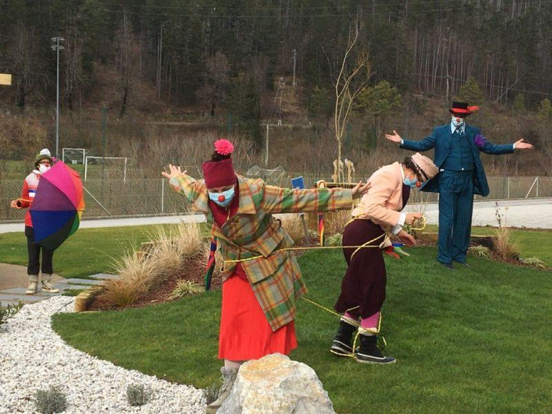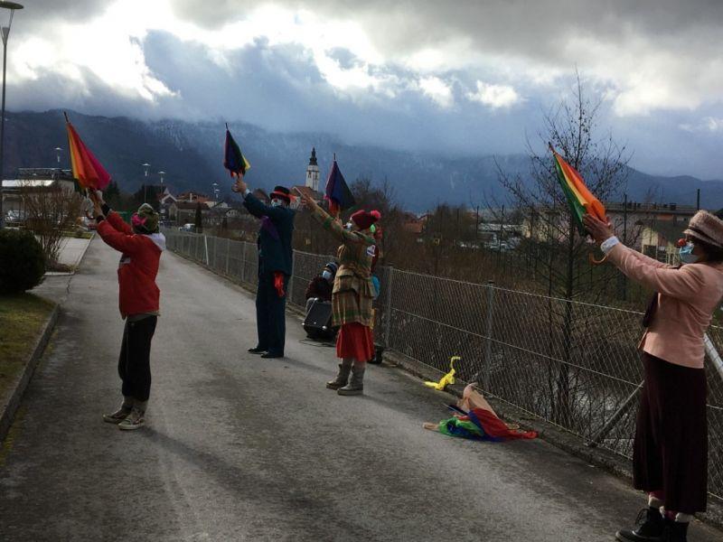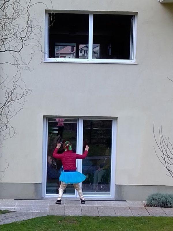 Tudi danes, 4. februarja, je bilo v našem Centru ponovno veselo in nasmejano. Za takšno zgodbo so s programom Skozi okno, zopet poskrbeli Rdeči noski, ki so naše stanovalce dobro presenetili z bogatim in atraktivnim programom. Celo vreme nam je bilo to popoldne naklonjeno, kajti program je bil prilagojen trenutnim razmeram in izveden v zunanji okolici doma. Tako smo lahko vsi skupaj na varen način polepšali dan našim stanovalcem ter jim pričarali tople iskrice v očeh.