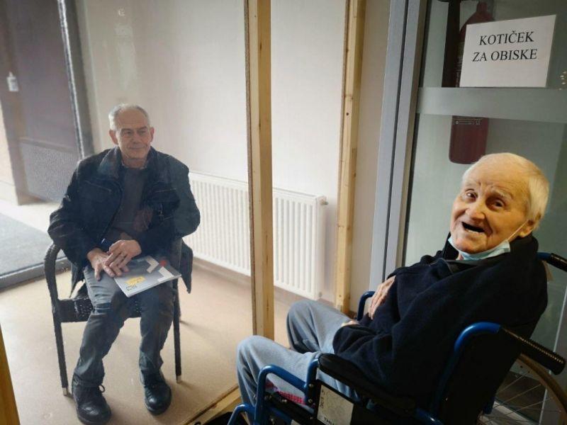V DEOS Centru starejših Notranje Gorice se zavedamo pomena socialnih stikov, bližine svojcev in stanovalcem dragih oseb. Čeprav so zaradi izredno slabe epidemiološke slike obiski v domovih omejeni, se je naša direktorica centra, Ana Petrič, odločila, da poišče rešitev in omogoči stanovalcem pogled na poznan obraz, tople besede in ”domače” nasmehe. S pomočjo gospe Katje Simončič, organizatorke projekta Zbliževalnik in s hišnikom Darkotom ji je uspelo! Tako je nastal kotiček za varne obiske, kjer je omogočen varen stik stanovalcev z bližnjimi.