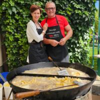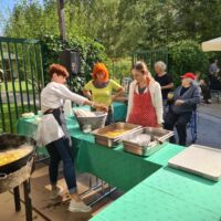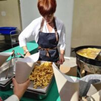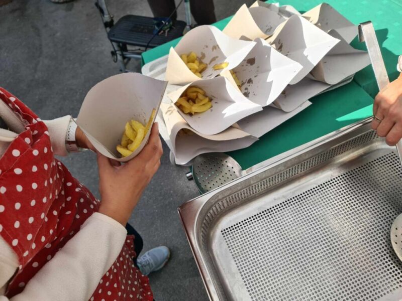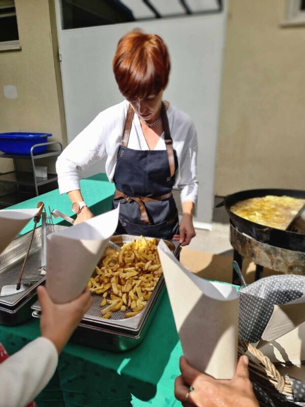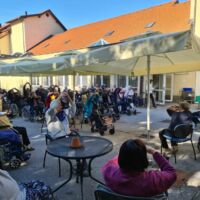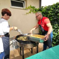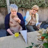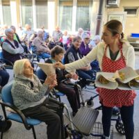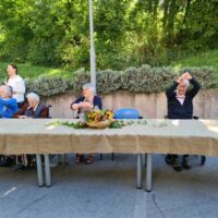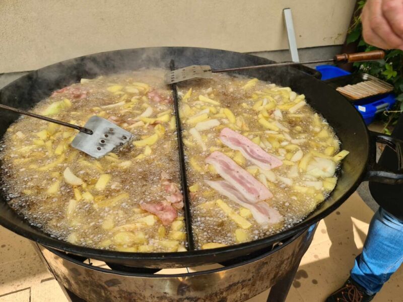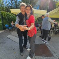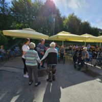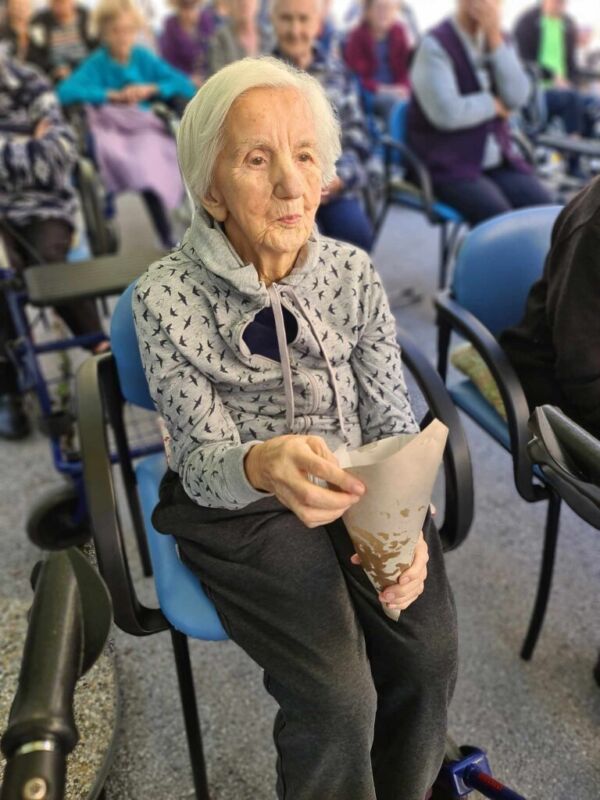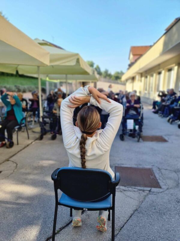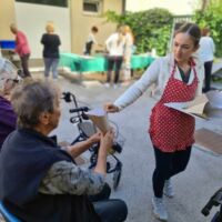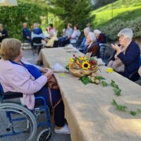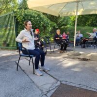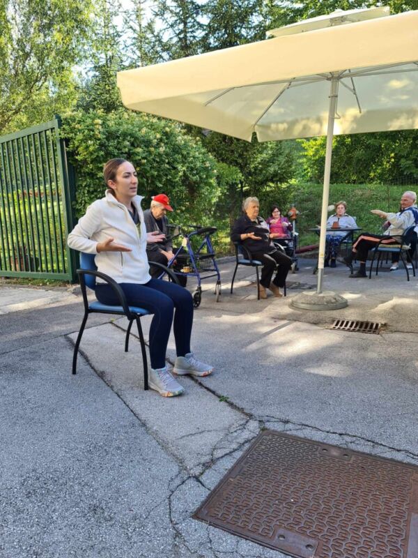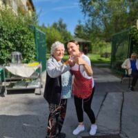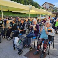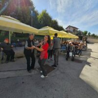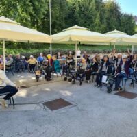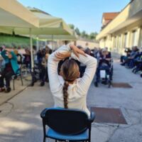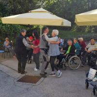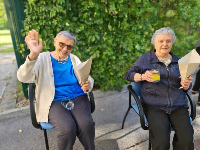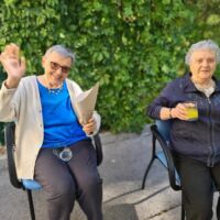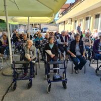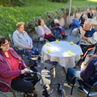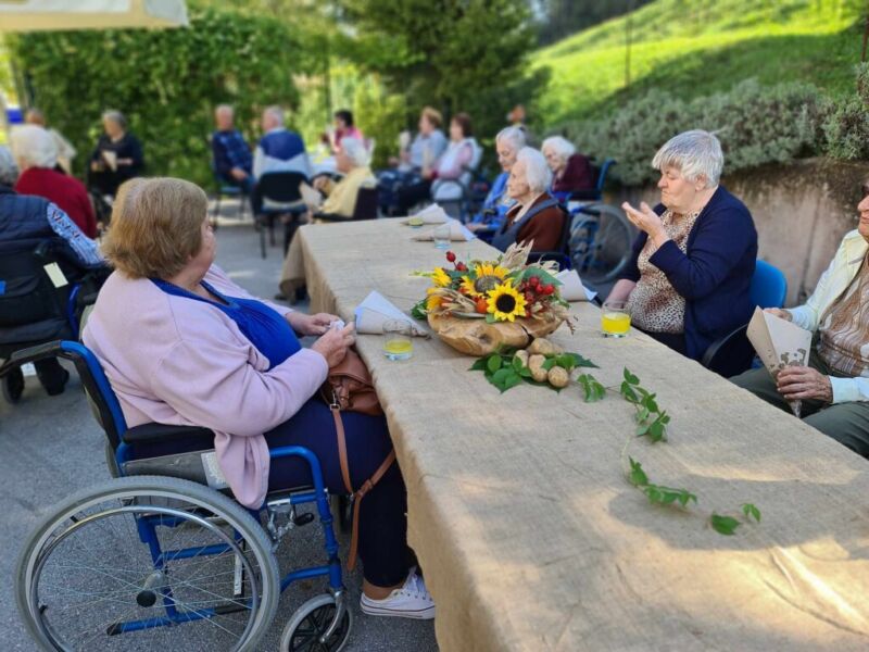 Danes je bil prekrasen dan, idealen za krompirjev piknik. Kmalu po 9 uri zjutraj, so se stanovalci in stanovalke DEOS, Centra starejših Cerknica začeli zbirati pred vrtom varovane enote, kjer so se najprej dobro raztegnili in potelovadili s fizioterapevtko Katjo. Že med telovadbo sta ekonom Janoš in računovodja Ines zavihala rokave ter pričela s peko krompirčka, da so se stanovalcem že cedile sline. Komaj so čakali, da se zaključi telovadba in da se piknik lahko prične. Stanovalke in stanovalci so povedali, da je bil krompir za prste obliznit. Da je bil resnično dober potrjuje tudi to, da ga ni prav nič ostalo. Druženje je bilo še bolj veselo, ko so skupaj ob poskočni glasbi tudi zaplesali.