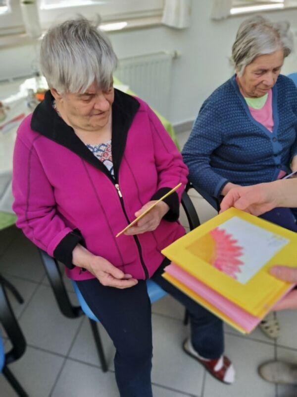 Po končani prireditvi smo zaposleni centra med naše stanovalke, katerim je bil namenjen najlepši naziv na svetu, razdelili še voščilnice učenk in učencev OŠ Toneta Šraja Aljoše Nova vas ter se s solzami sreče v očeh poslovili od gostujočih, ki so nam pripravile zares prečudovito praznovanje materinskega dne.