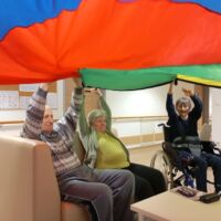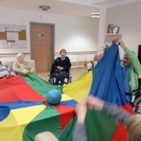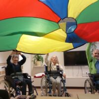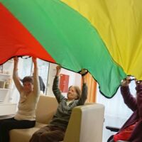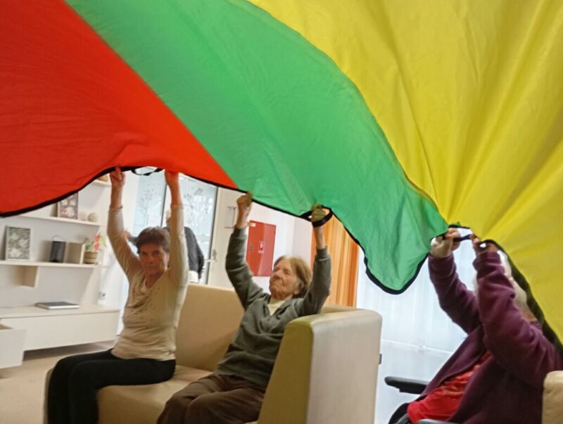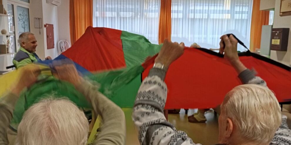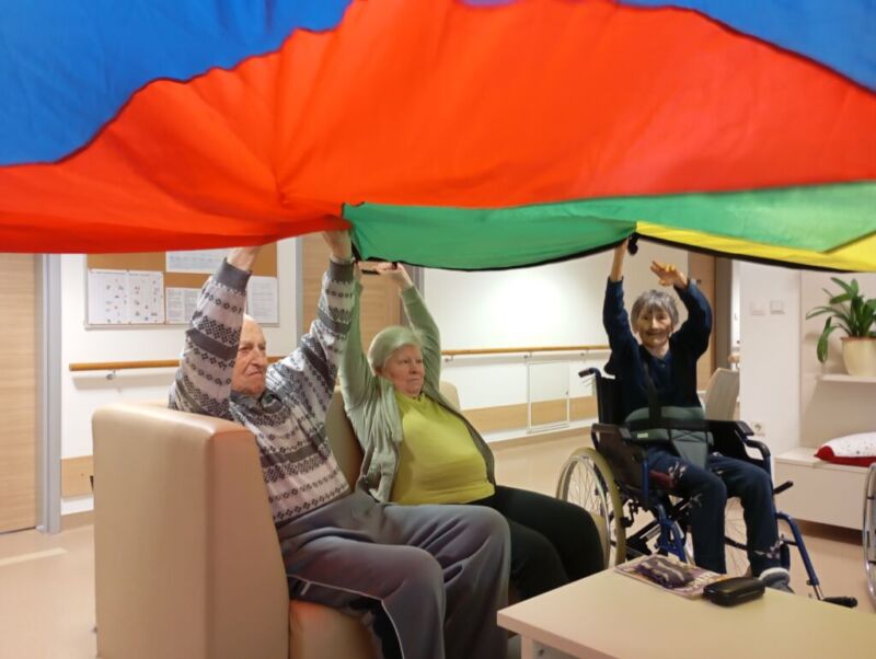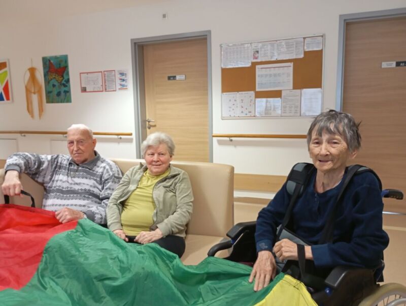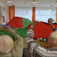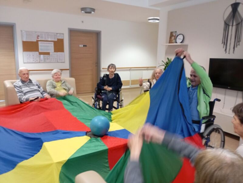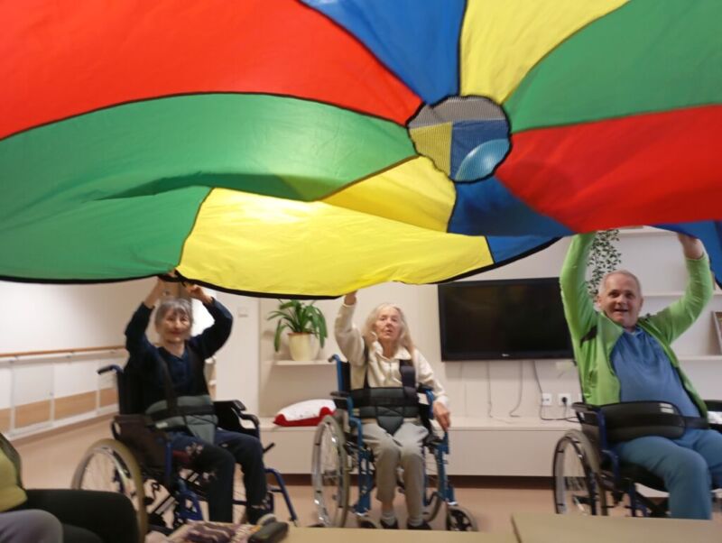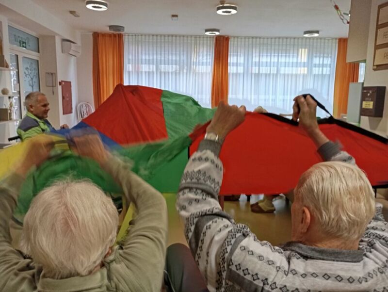 Sobotno dopoldne smo si na enoti Breza popestrili z barvami. Mavrično padalo nam je polepšalo deževen dan. Padalo je eden izmed interaktivnih pripomočkov, saj privabi posebne občutke in veselje. Kdor se ni želel poigrati s padalom, se je pridružil družabnim igram.