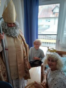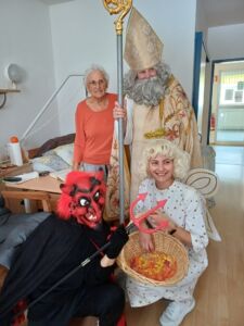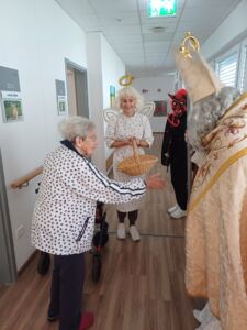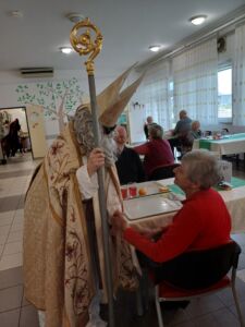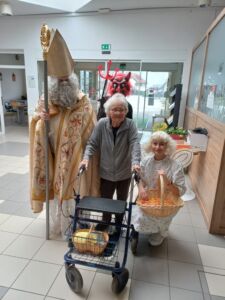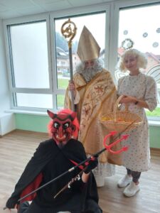 Tudi v DEOS Centru starejših Gornji Grad smo bili deležni posebnega obiska. Obiskal nas je dobri prvi mož v decembru- Miklavž. S seboj je pripeljal tudi svoja pajdaša, prijaznega angela in vražjega hudička, ki sta poskrbela za smeh in radost. Miklavž je povedal, da nas je celo leto spremljal in da smo bili nedvomno pridni, nekaj malo manj pridnih pa je dobilo šibo…  Zares pa se je začelo čutiti tisto praznično vzdušje in toplino. Hvala Miklavžu in vsem dobrim ljudem za dobra dela.