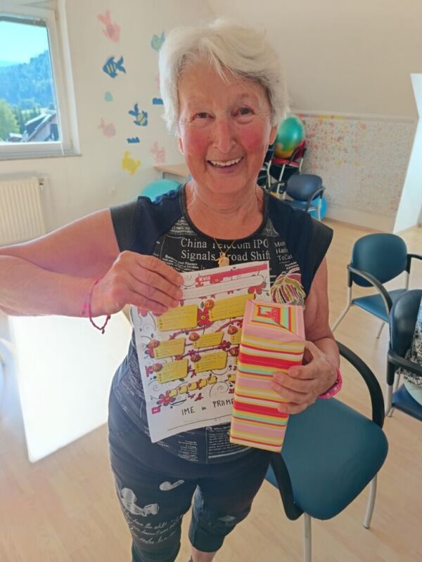 Tokratna nagradna uganka ni bila mačji kašelj. Stanovalci so morali napeti možgančke, da so iz sklopov vprašanj sestavili pravilno rešitev. Nagrajenka, ga. Marija, je morala tako najprej dobro napeti možgančke, kasneje pa ji je pri žrebu pomagala sreča. Veselila se je priročne nagrade – termovke, s katero bo skrbela, da bo poleti tekočina ravno prav hladna, pozimi pa bo topel čaj ohranjal svojo temperaturo skozi cel dan. “Lepo je sodelovati, še lepše zmagati pravi marija (ha ha)”.