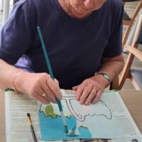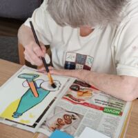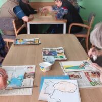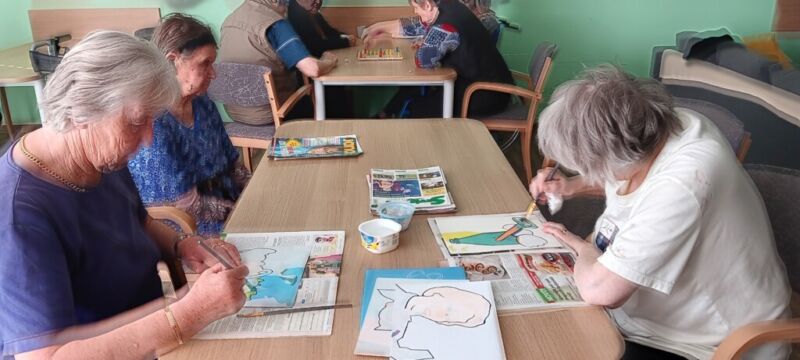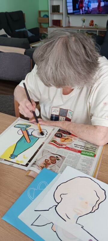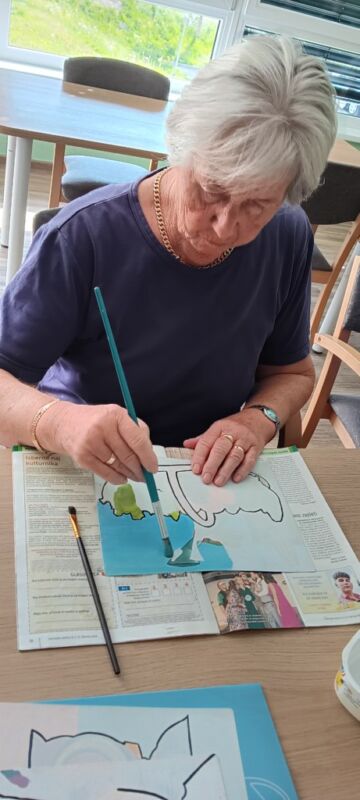 Dajte nam čopič in vodo, mi pa bomo iz tega ustvarili umetnino… Takole pridno so se naši stanovalci lotili umetniške aktivnosti, kjer so z kančkom pomoči “čarovnije” ustvarili čudovite risbe.