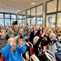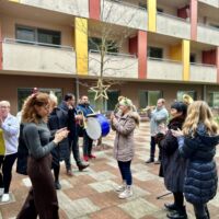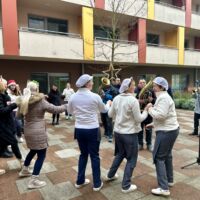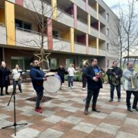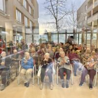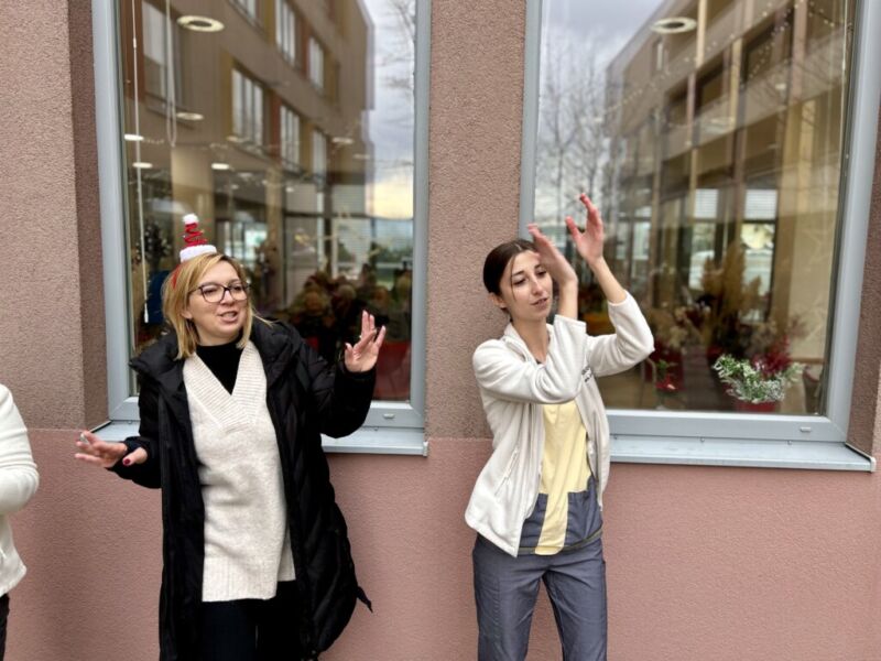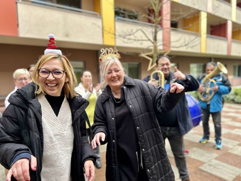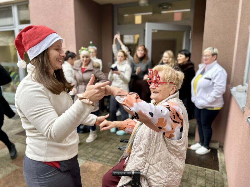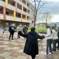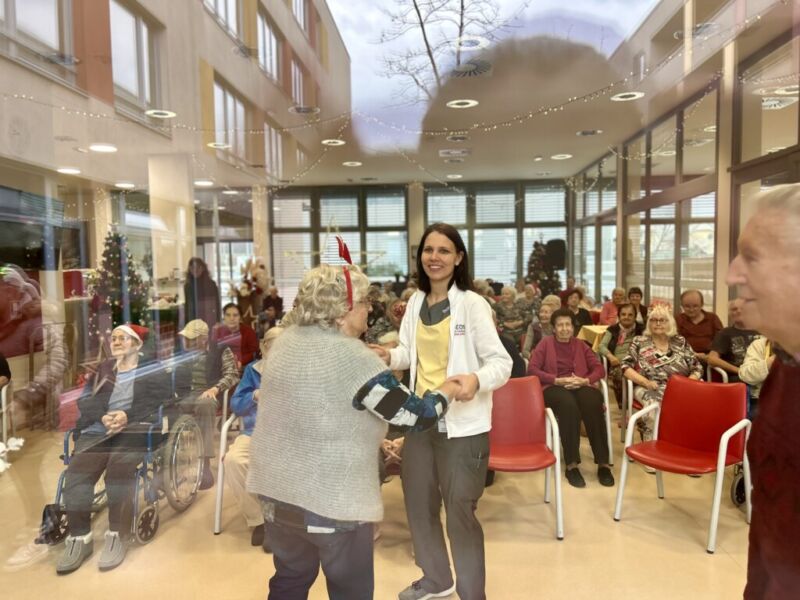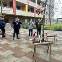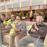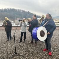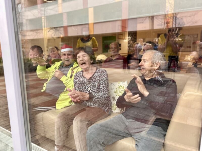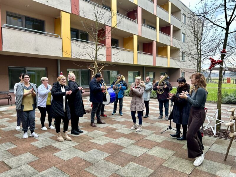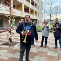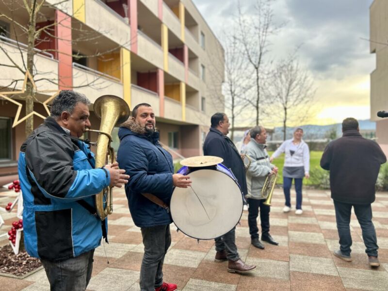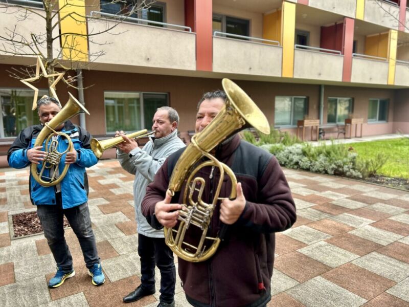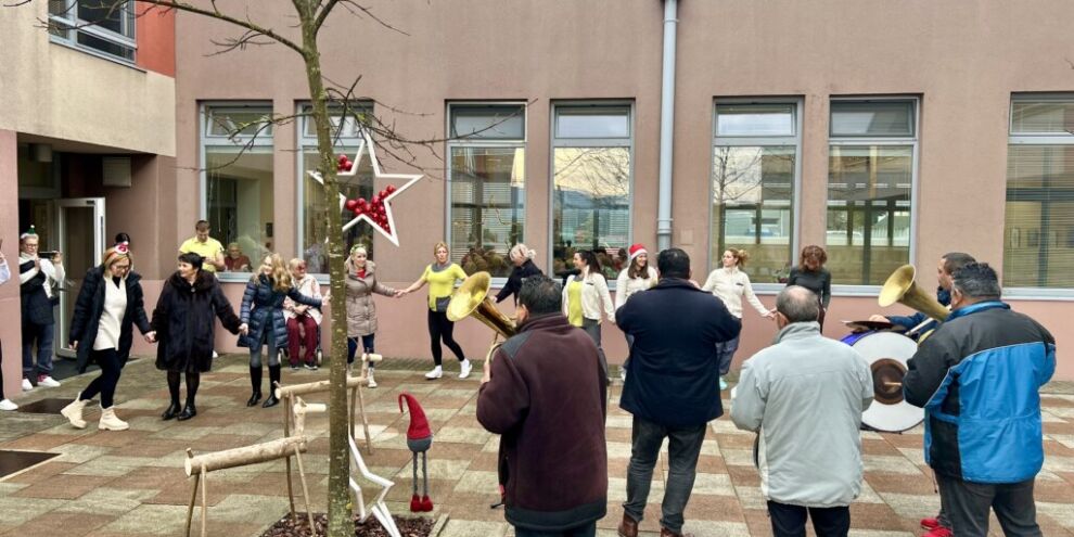 Na ogledu praznične Ljubljane se je direktorica dogovorila s trubači, da pridejo in razveselijo prav vse stanovalce centra. Glasba je odmevala po skupnosti in stanovalci ter zaposleni smo se veselili, ploskali, prepevali in celo zaplesali. Tudi streha centra je zopet oživela, glasba pa segla v vse kotičke, sobe, postelje, hodnike, delovne prostore in naravnost do srca. Muzičarji so bili gospodje iz Vranjega (Srbija). Z veseljem pridejo še igrati v Slovenijo in v Notranjih Goricah imajo kontakt, če koga zanima. Sami smo jih že rezervirali za naslednje leto in zagotovo bo zopet veselo.