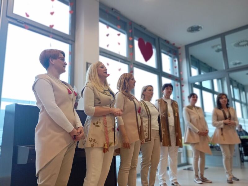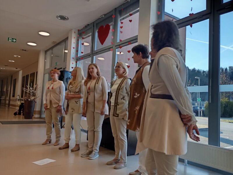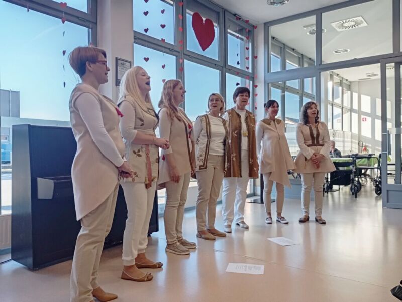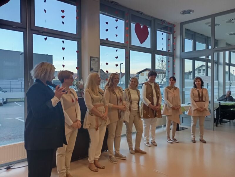 Četrtkovo popoldne so nam polepšale pevke pevskega zbora Drumljce. S svojimi glasovi so nas popeljale v čas nazaj in nam prepevale ljudske pesmi. Stanovalci so jih spremljali, se smejali in z njimi tudi zapeli.