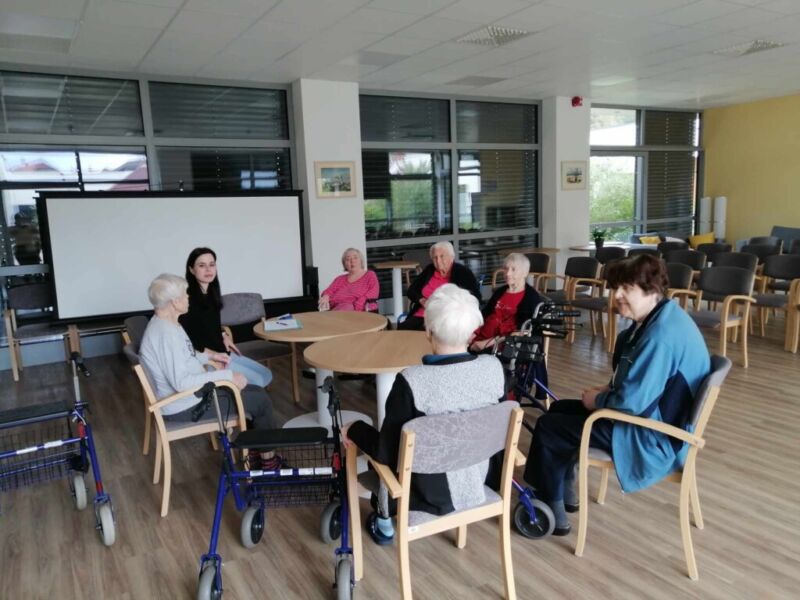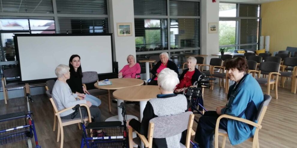 Stanovalke so se družile s pripravnico socialno delavko ob pogovorni skupini. Tema jih je zapeljala v preteklost, v čas vojne, poplav, spominov, ki so stanovalke tako zaznamovale, da so si jih zapomnile za vedno.