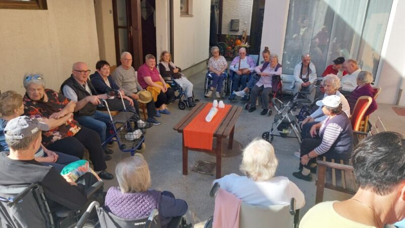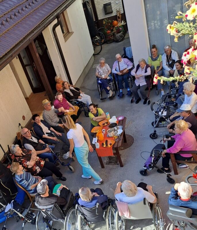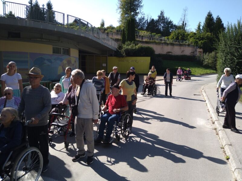 Vsako leto se ob svetovnem dnevu hoje stanovalci DEOS Centra starejših Zimzelen iz Topolšice odpravijo na pohod k fizioterapevtki Suzani. Letos so pohod poimenovali »Pohod k Cilki«. Suzanina tašča gospa Cilka jih namreč vedno prijazno pogosti z domačim pecivom, kavico in domačim grozdnim sokom. Vreme v petek je bilo prekrasno, stanovalcev se je zbralo kar 22 ter delovni terapevtki, animatorka in dijaki. Urica druženja je hitro minila. Ob koncu so zapeli ter se počasi vrnili nazaj v center.