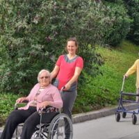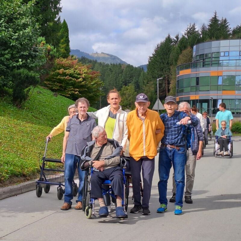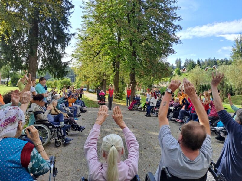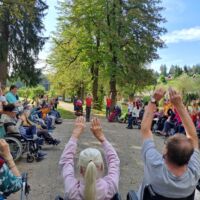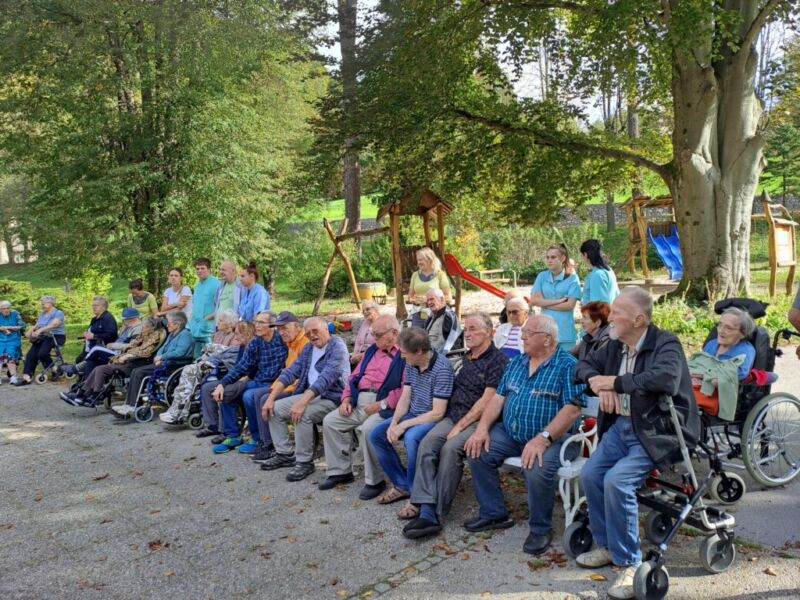 Tokrat smo pohod za spomin izvedli s stanovalci in zaposlenimi DVO Velenje, ki so se nam pridružili pri termah. Skupaj smo pot nadaljevali do zdraviliškega parka, kjer smo pod vodstvom fizioterapevtke Suzane izvedli dihalne vaje in delček joge smeha. Jelka Florjančič, nam je povedala zakaj se izvaja pohod za spomin. Na koncu smo se še posladkali s sladoledom in skupaj zapeli.