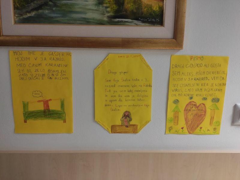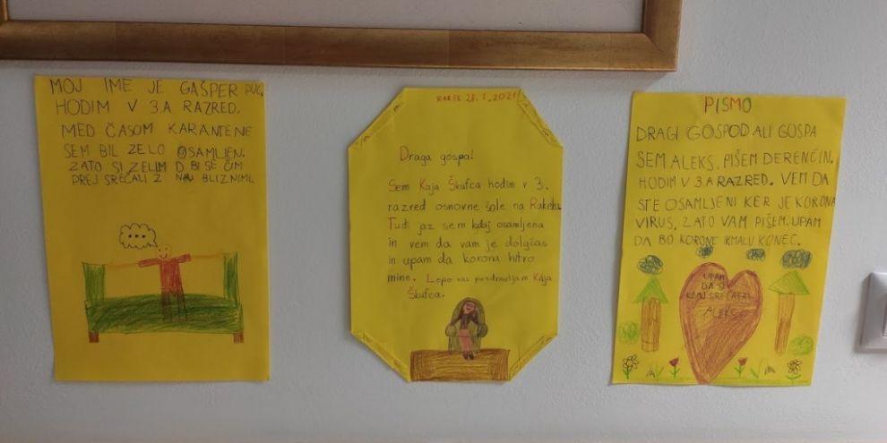 Na OŠ Jožeta Krajca Rakek in podružnični šoli OŠ Rudolfa Maistra Unec so se v teh dneh spomnili na starostnike, za katere trenutne razmere niso nič kaj prijazne. Učence in zaposlene na šoli, je šolanje na daljavo spomnilo na to, kako pomembni so objemi, stiski rok, nasmehi v živo in prava človeška bližina. Zato so se odločili, da starostnikom, ki prebivajo v okoliških domovih za starejše občane, kar po pošti pošljejo dobro voljo in nasmehe ter tako pokažejo, da mislijo nanje. Napisali so spodbudna pisma, lepe misli, uganke in narisali risbice s pozitivnimi sporočili za kar se jim iskreno zahvaljujemo.