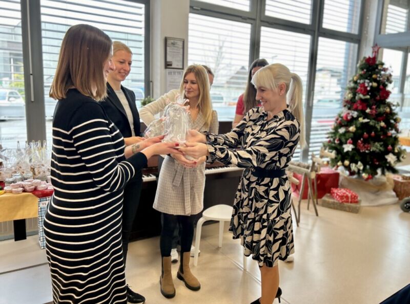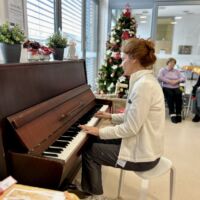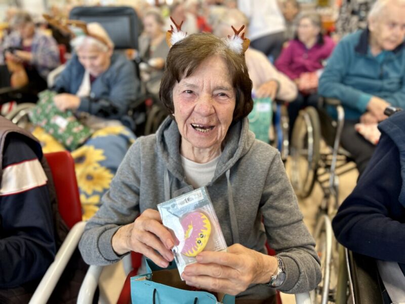 Današnje dopoldne so nam polepšale prijazne zaposlene z računovodske hiše Unija iz Brezovice. Praznični srečelov smo pričeli z glasbenim nastopom delovne inštruktorice Katarine, ki je čudovito zaigrala na pianino in nas z glasbo popeljala v čarobni decembrski čas. Prostor z darili za stanovalce se je kar šibil od teže in vsi smo zvedavo gledali lesketajoče darilne vrečke in pakete. Prav vsak izmed stanovalcev je preizkusil svojo srečo z žrebanjem številke in prejel čudovito darilo s koristnimi in zabavnimi rečmi. Smeha je bilo veliko, saj so darila zbudila veselje in smeh, ki se je razlegal po vsej recepciji.
