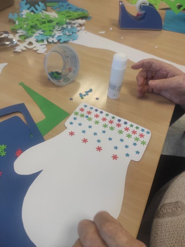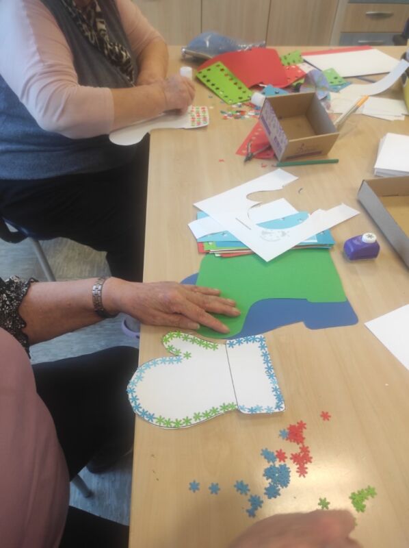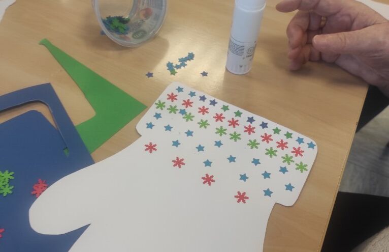 Stanovalke se v decembru pridno udeležujejo ročnih del, kjer skupaj z delovno terapevtko Anjo ustvarjajo božično novoletno dekoracijo za prostore našega centra.