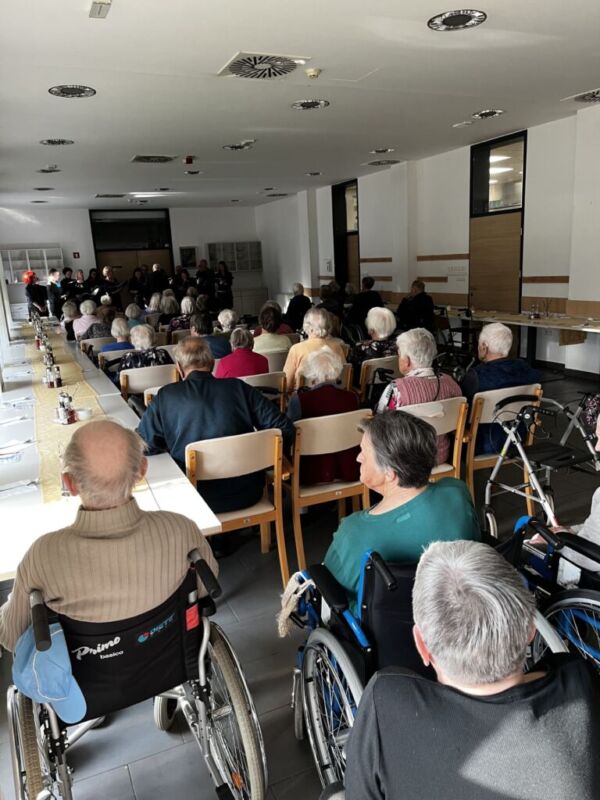 Takšni obiski imajo za stanovalce velik pomen, saj prinašajo svežino, druženje in kulturno doživetje. Nastop komornega zbora Vocis Imago je bil zato čudovita priložnost za praznovanje dveh praznikov – dneva žena 🌷 in dneva mučenikov 🌹 – ter hkrati lep opomnik, kako pomembni so pozornost, skupnost in drobne geste, ki polepšajo vsakdan.