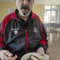 Tokrat smo se zbrali vsi, ki praznujemo aprila. Skupaj smo zapeli, se pogovarjali in nasmejali različnim prigodam povezanim z rojstnimi dni naših stanovalcev, na koncu pa smo pojedli še res odlično torto.