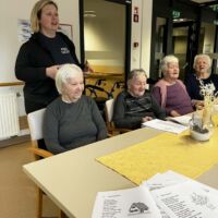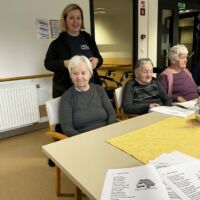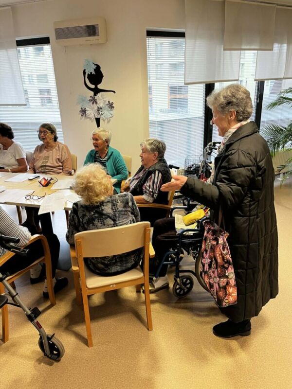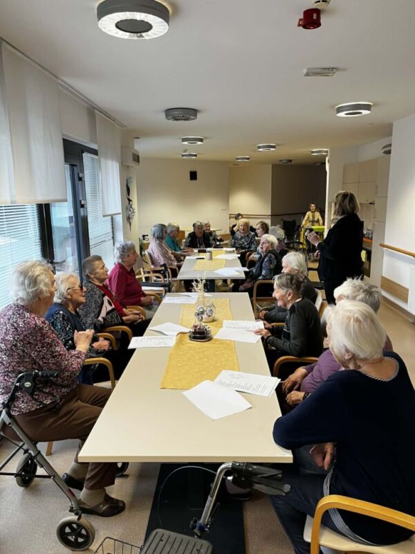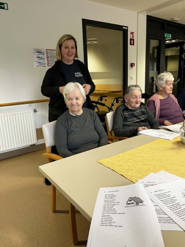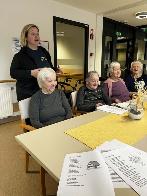 Skupaj smo skozi znane melodije, dihalne vaje in nežno razgibavanje glasu obudili spomine ter ustvarili prijetno, povezano vzdušje. Prostor so napolnili nasmehi, pogovori in pesem, ki vedno najde pot do srca.