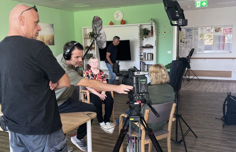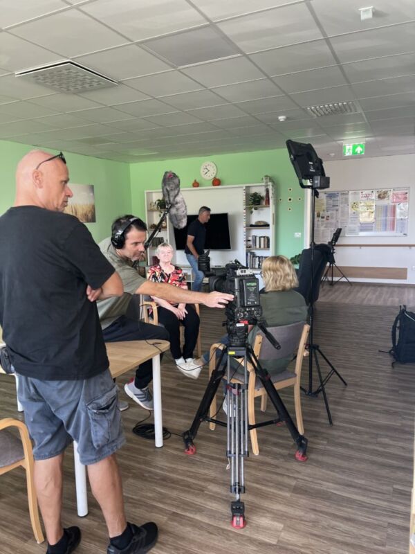 Obiskala nas je snemalna ekipa s televizije, ki je pri nas pripravila prispevek o življenju v centru in demenci. Ker kamer pri nas res ne vidimo vsak dan, smo se na obisk skrbno pripravili – uredili smo si pričeske, okrasili prostore, oblekli nekaj lepšega …