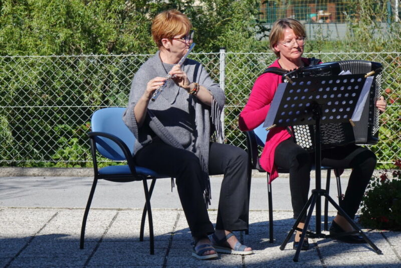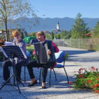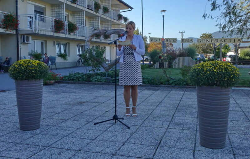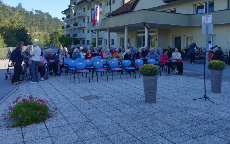 V DEOS, Centru starejših Cerknica, so se danes obdali z mlado energijo, da v duhu sožitja doživijo skupno praznovanje ob Mednarodnem dnevu starejših, ki ga obeležujemo 1. oktobra. Letošnjemu praznovanju Mednarodnega dneva starejših so se povabilu odzvali župan občine Loška dolina, gospod Matjaž Antončič, ravnateljica OŠ Heroja Janeza Hribarja Stari trg pri Ložu, gospa Nataša Vesel Plos ter članice kulturnega društva Rak Rakek. Praznovanje se je odvijalo na prizorišču pred Centrom, kjer so zaposleni skrbno pripravili in uredili prostor za vse goste ter nastopajoče. Tokrat so njihov program obogatile prijetne gospe iz Društva upokojencev Rakek, ki slišijo na ime SIBIA ter učenke 2. in 3. razreda podružnične OŠ Iga vas, pod skrbnim vodstvom njihove učiteljice gospe Kristine Škulj. Z bogatim glasbenim programom so stanovalkam in stanovalcem vsekakor polepšali že tako lep dan. Po končani prireditvi je sledilo še druženje na toplem soncu ob dobrotah, ki so jih pripravili v kuhinji Centra ter ogled nove razstave likovne sekcije KD Rak Rakek, ki krasi stene Uprave Centra.