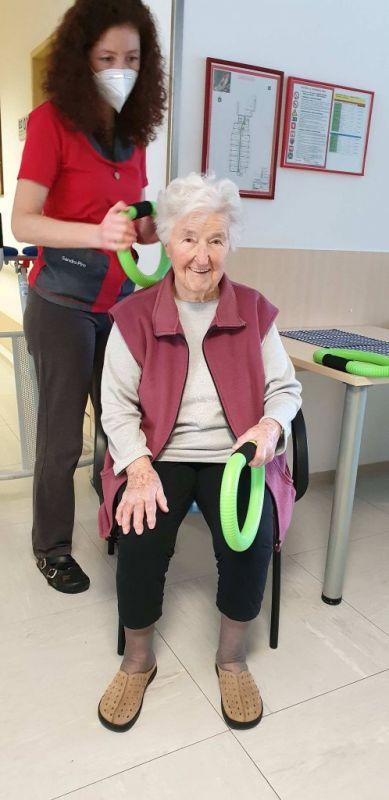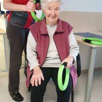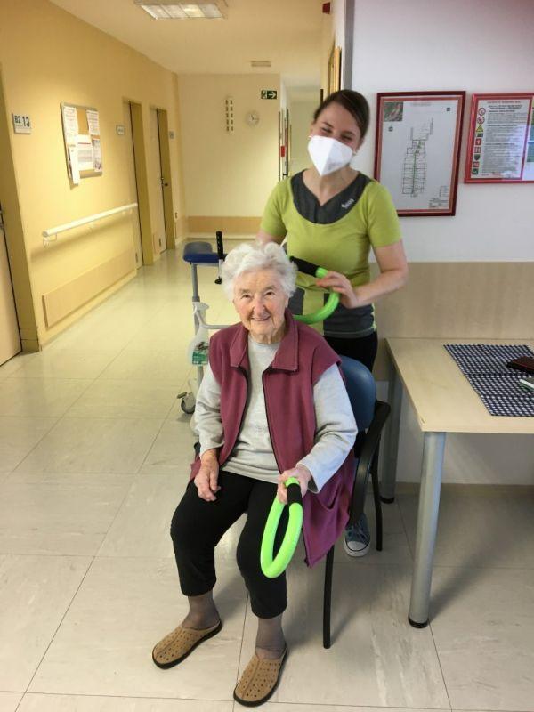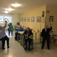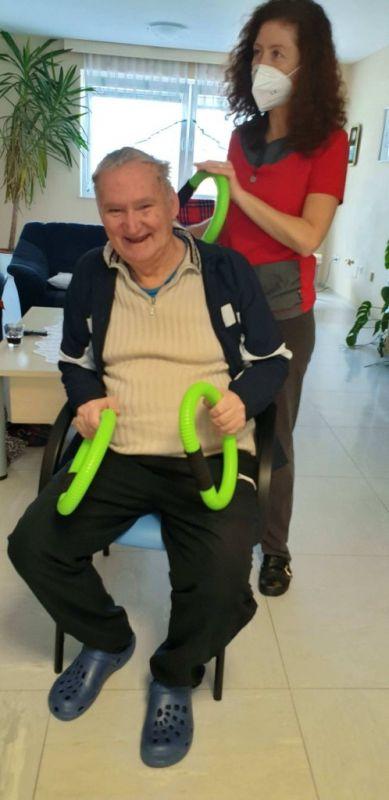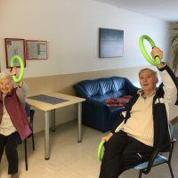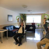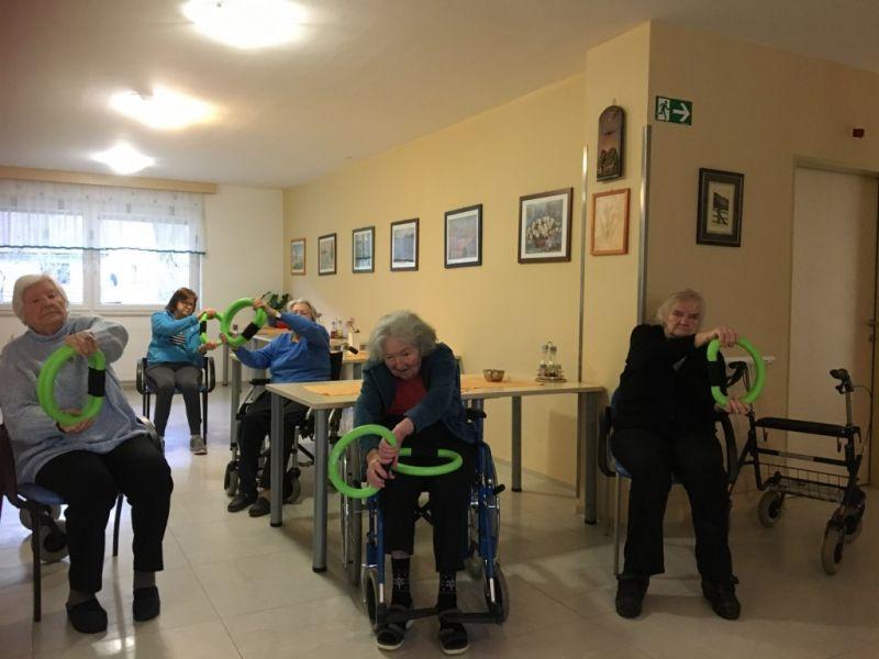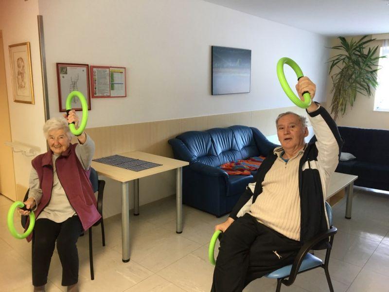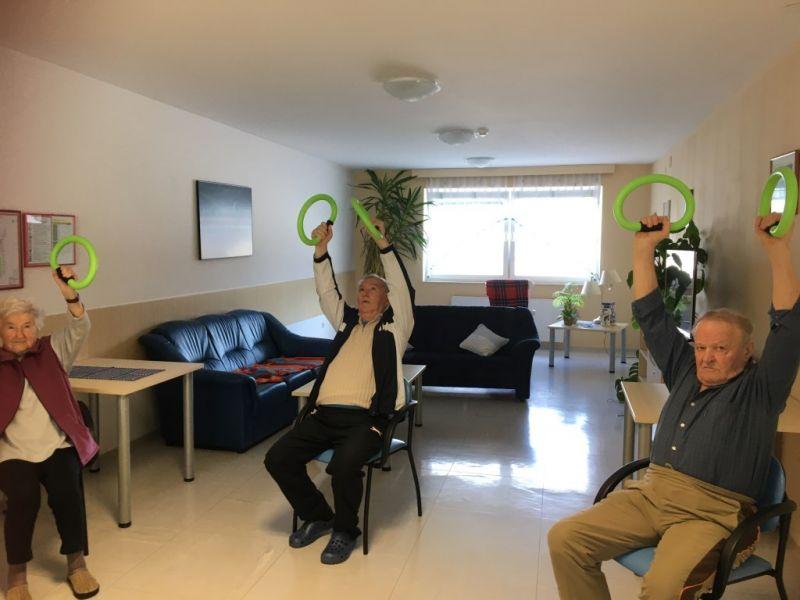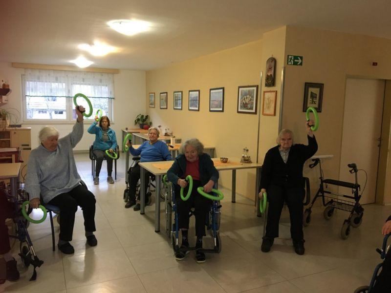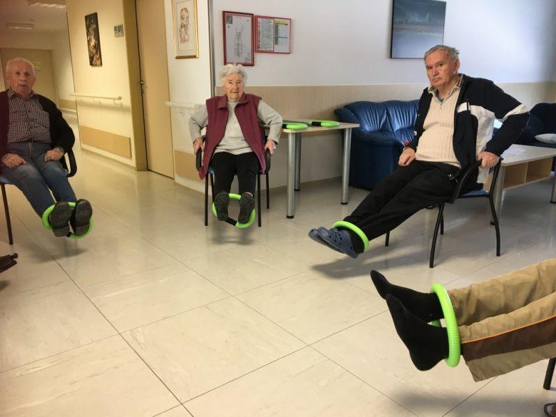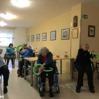 V tem tednu smo obarvali naše skupno razgibavanje po enotah v zeleno. Kot že pred časom, smo ponovno prijeli v roke smovey vibracijsko-nihajne obroče. Z njimi smo dodatno krepili telo in zavest, spodbujali naravno gibanje, krepili mišice, poživljali krvni obtok, aktivirali limfni sistem, skrbeli za koordinacijo in stabilizacijo, izboljševali gibljivost, vzpodbujali delovanje možganov, uravnavali energijo in se zraven še sproščali. Odziv sodelujočih stanovalcev je bil ponovno pozitiven in obljubili smo si, da moramo kaj takega večkrat ponoviti.