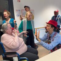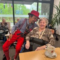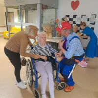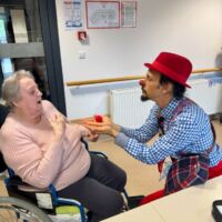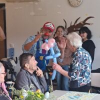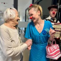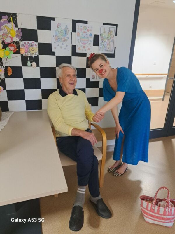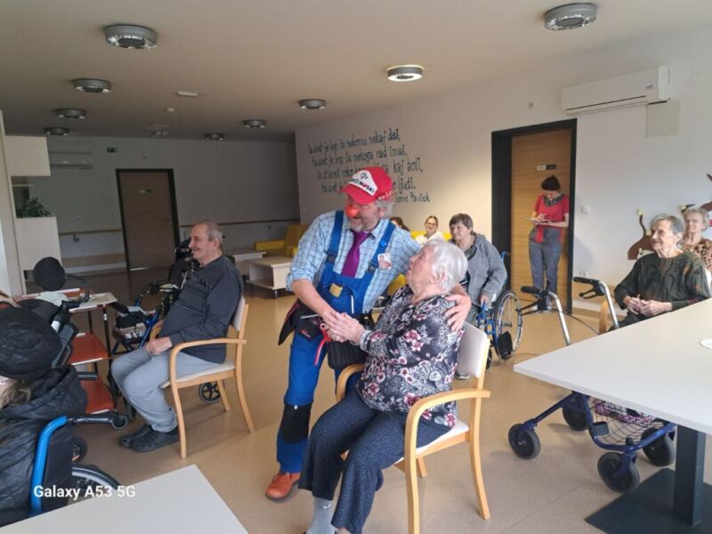 Obisk pa je bil še posebej čaroben za eno od stanovalk, ki je prav na ta dan praznovala rojstni dan. Klovni so ji pripravili prisrčno presenečenje – z baloni so oblikovali pisano rožico in ji jo slovesno podarili. Zraven so zapeli rojstnodnevno pesem in z njo zaplesali, kar je ganilo tako slavljenko kot tudi ostale prisotne.