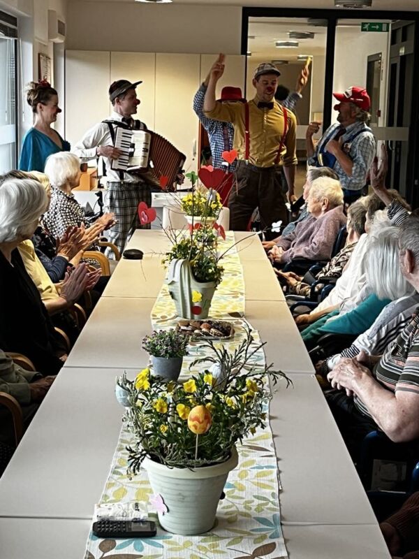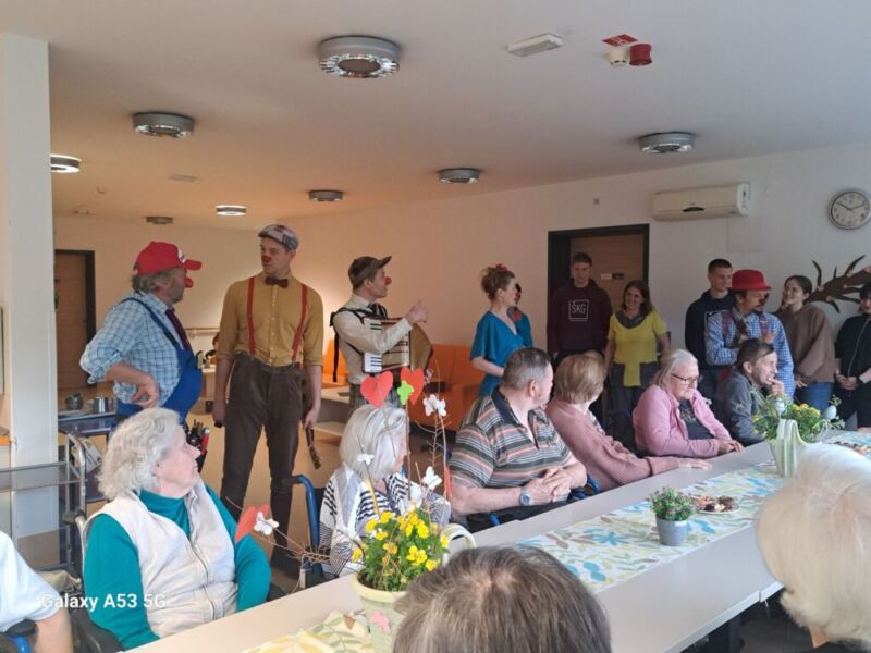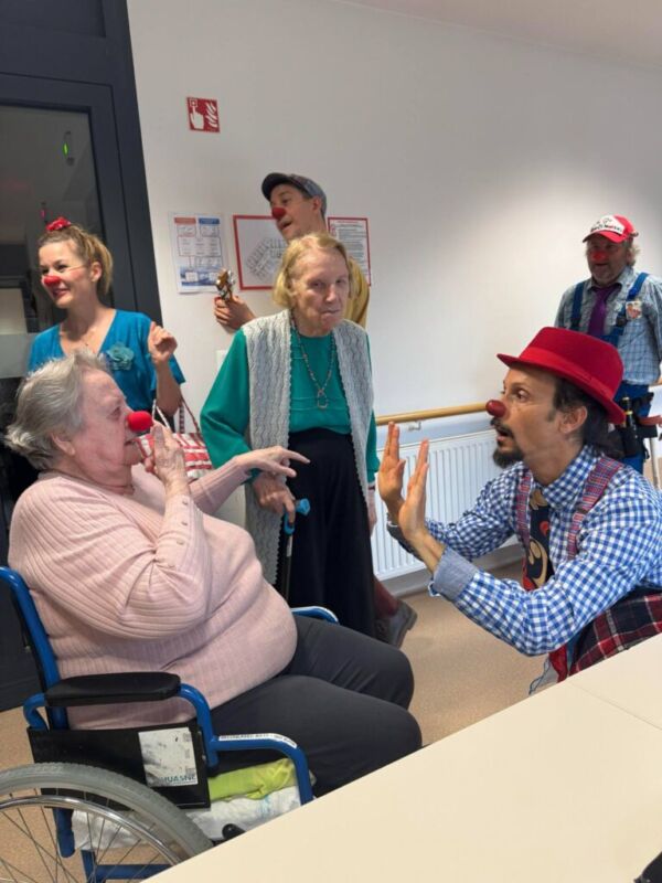 Takšni trenutki so neprecenljivi – ne le, da razveselijo stanovalce, temveč tudi prinesejo toplino, spodbudo in občutek povezanosti. Hvaležni smo Rdečim noskom za njihov obisk in upamo, da se bodo kmalu spet oglasili pri nas. Njihova prisotnost je dokaz, da je iskren nasmeh včasih najlepše darilo.