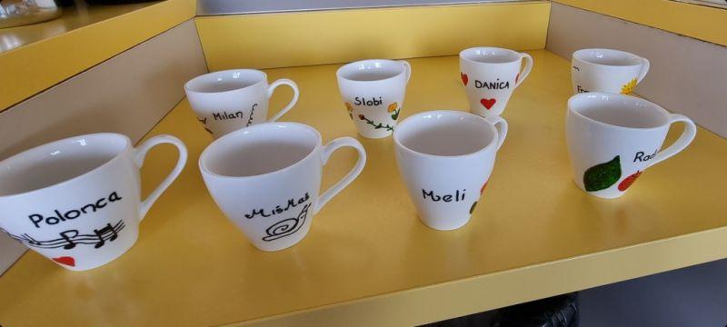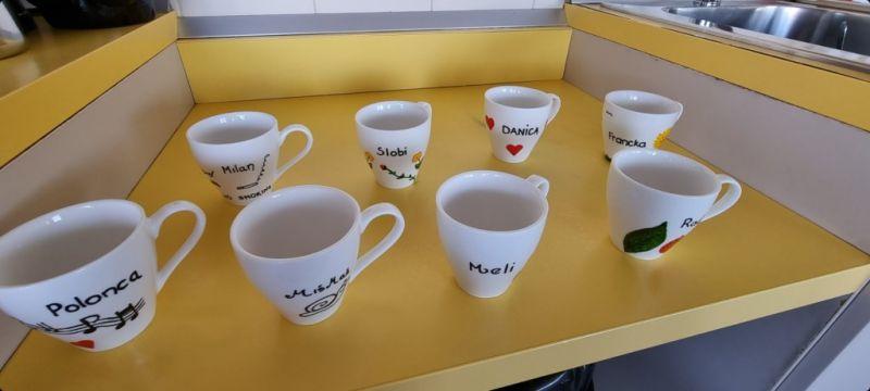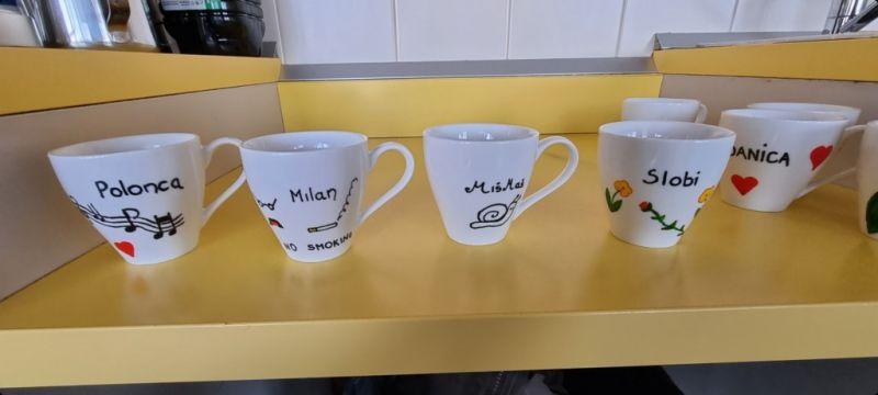Stanovalci našega Centra najraje pijejo kavo, ki si jo privoščijo po zajtrku. Stanovalci lahko spijejo kavo na oddelku ali v našem bifeju v recepciji. Vsem, ki pijejo kave na oddelkih smo polepšali skodelice in nanje napisali imena, da jih bodo lažje prepoznali. Z velikim zanimanjem in veseljem so si ogledali poslikane skodelice. In glej ga zlomka…kava je bila res boljšega okusa.