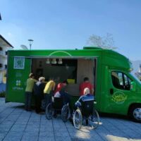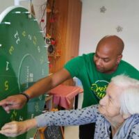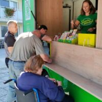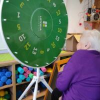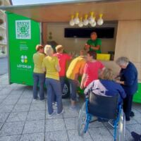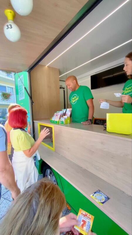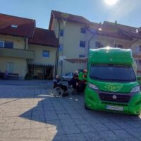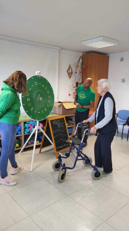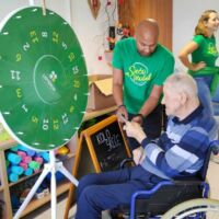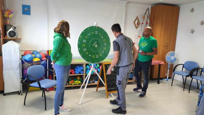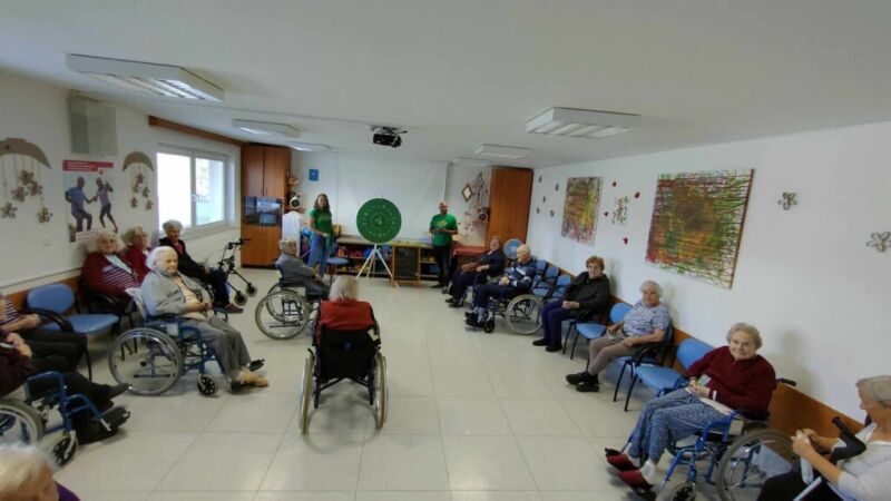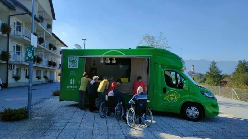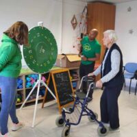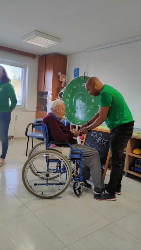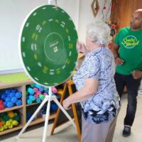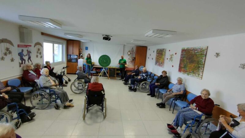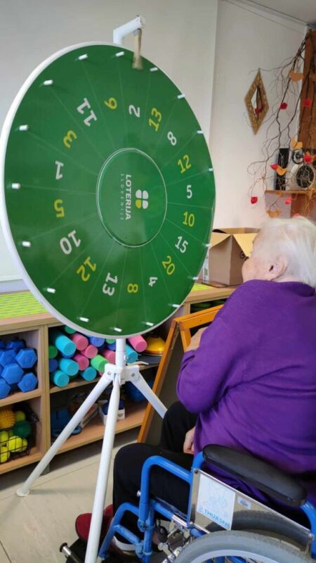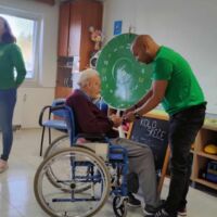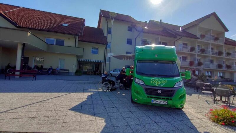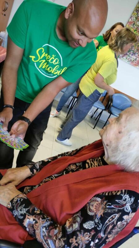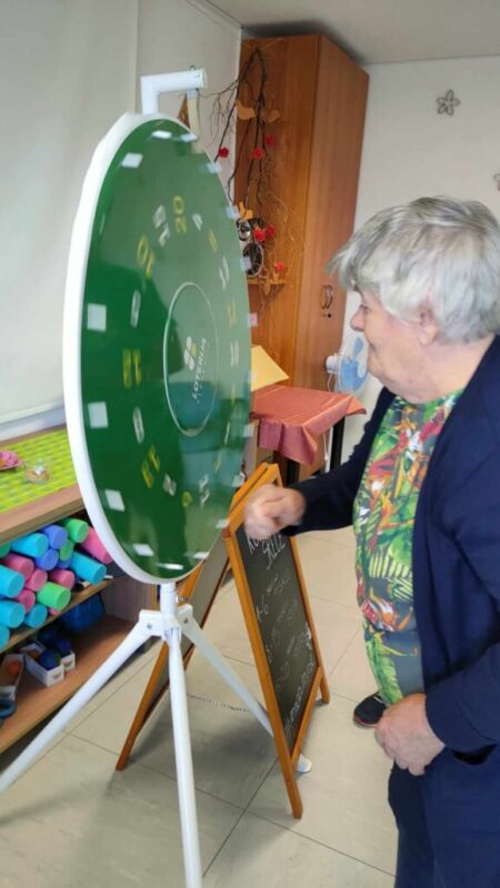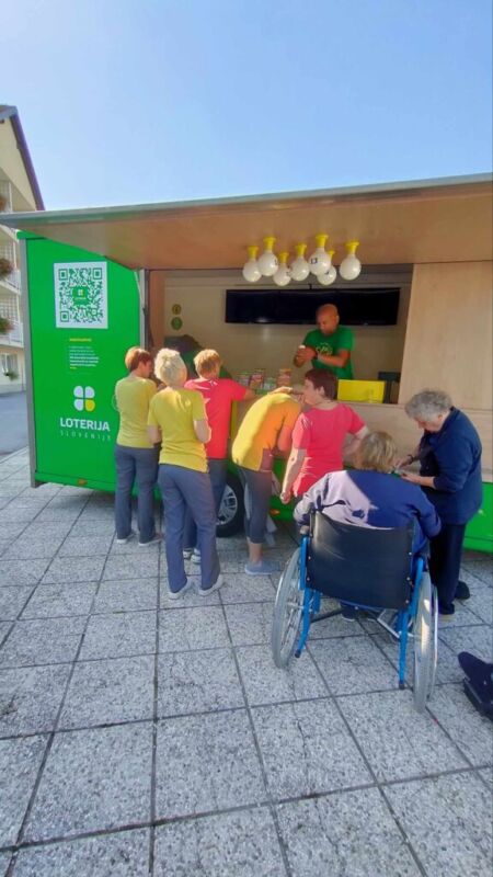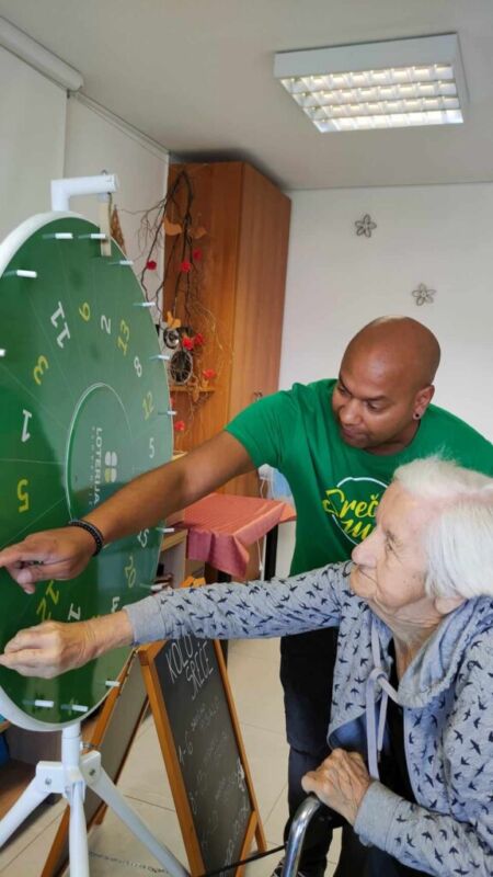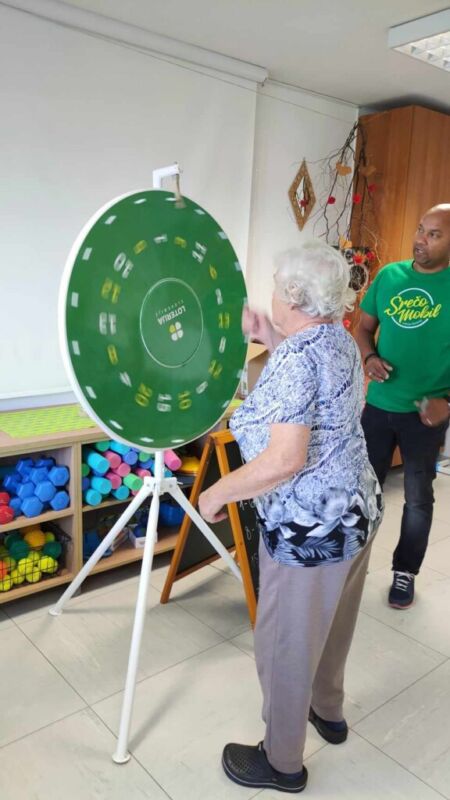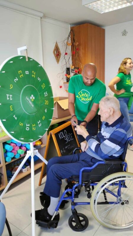 Sreča je potrkala tudi na vrata našega Centra. Danes se je pri nas oglasil Srečomobil. S seboj so imeli tudi kolo sreče, katerega so stanovalci in zaposleni vrteli v večnamenskem prostoru, zunaj, pred Centrom, pa je stalo promocijsko vozilo, kjer so lahko tako stanovalci kot zaposleni preizkusili svojo srečo pri drgnjenju srečk.