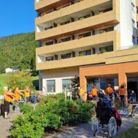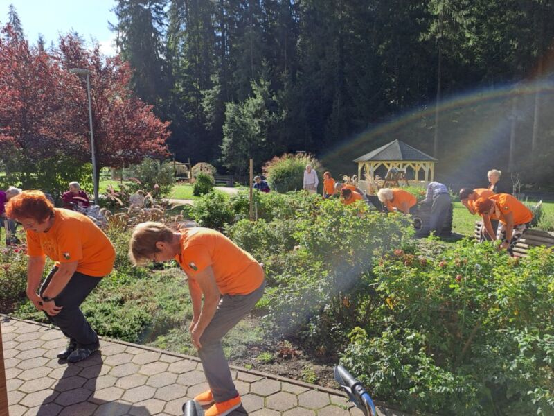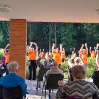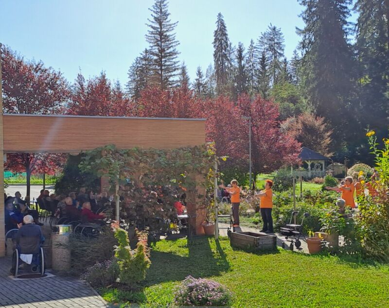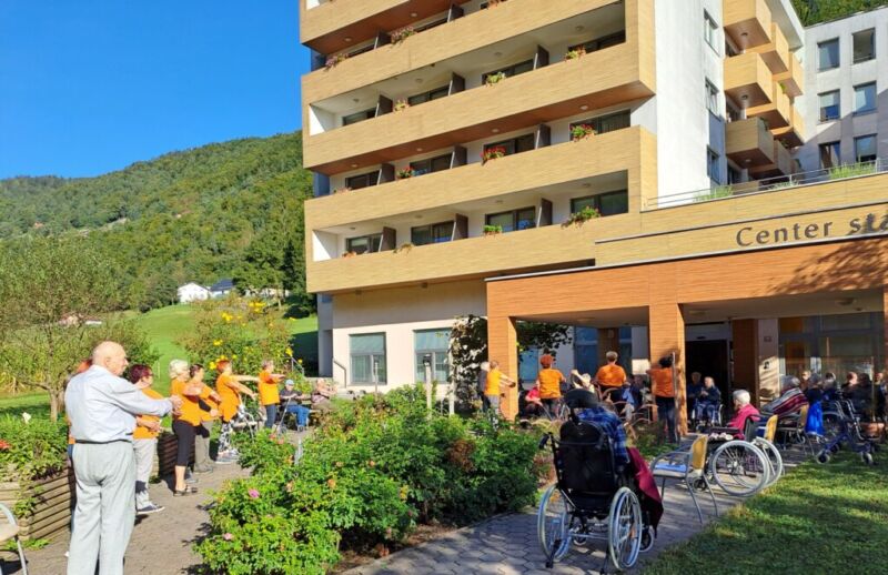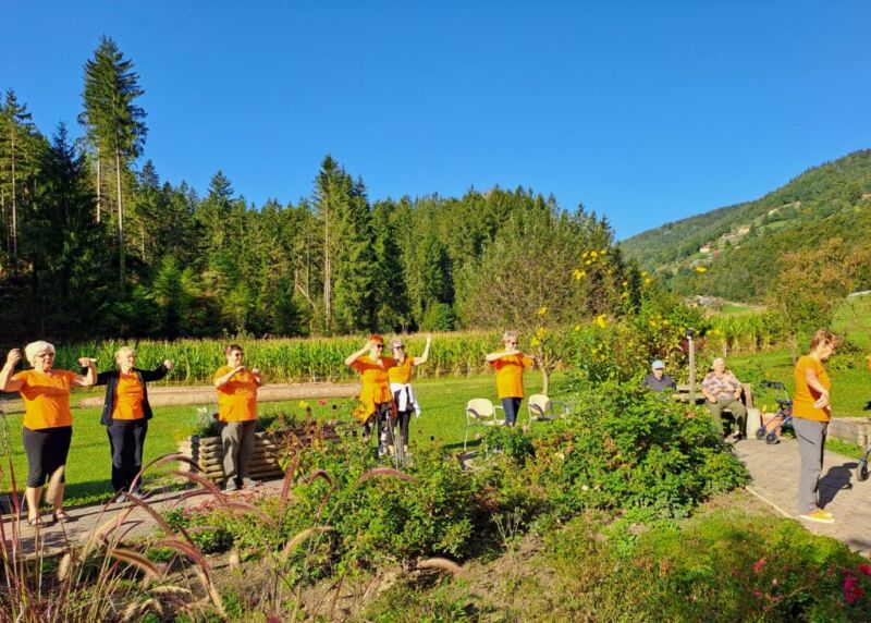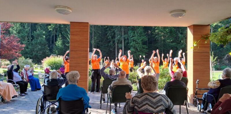 V sklopu Evropskega tedna mobilnosti 2023 so se nam pri jutranji telovadbi pridružile članice Šole zdravja Šoštanj, ki so skupaj z našimi stanovalci izvajali prilagojene vaje 1000 gibov za zdravje. Stanovalci so udeleženkam sledili po svojih zmožnostih, po koncu telovadbe pa so skupaj prijetno poklepetali, se okrepčali s čajem in sadjem.