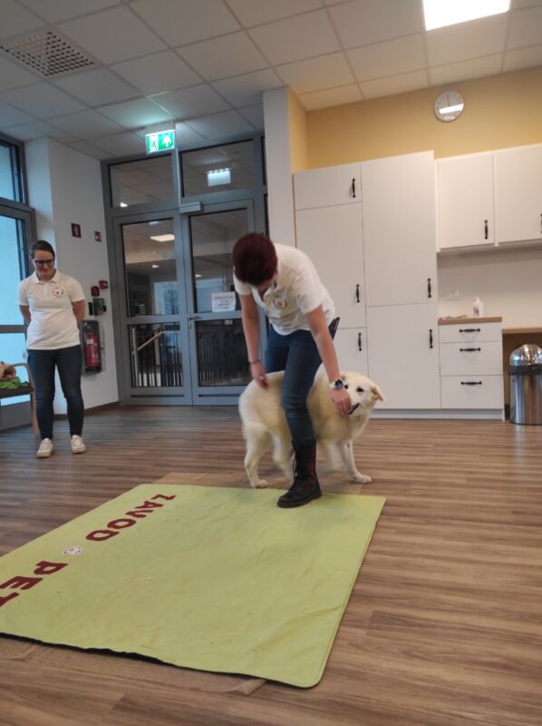 Včeraj nas je obiskal terapevtski pasji par Klara in Rozi. Rozi je mešanka med labradorcem in zlatim prenašalcem, ki kljub svojim 10 – tim letom izžareva mladostno energijo. Rozi je kot nalašč za naše stanovalce, saj uživa v čohanju in pohvalah na njen račun, ki so kar letele iz ust naših stanovalcev.