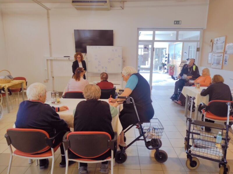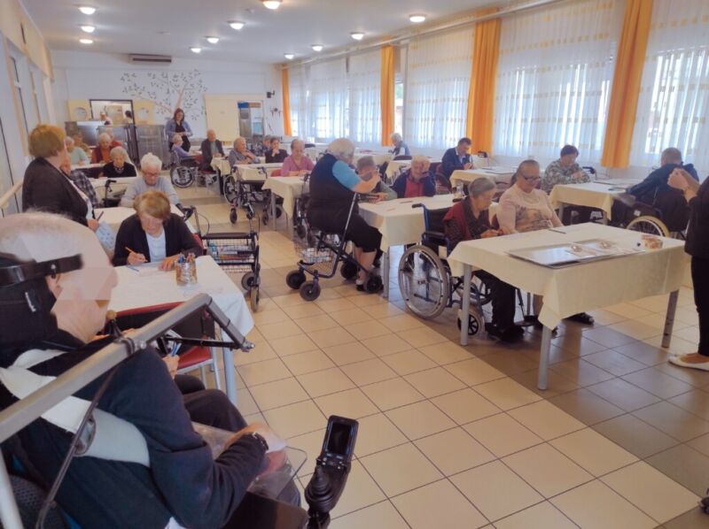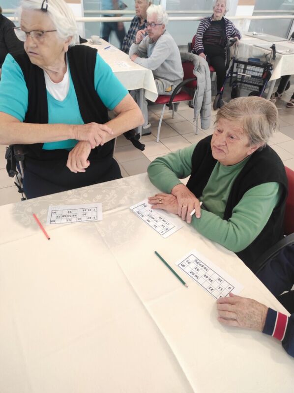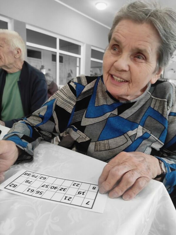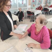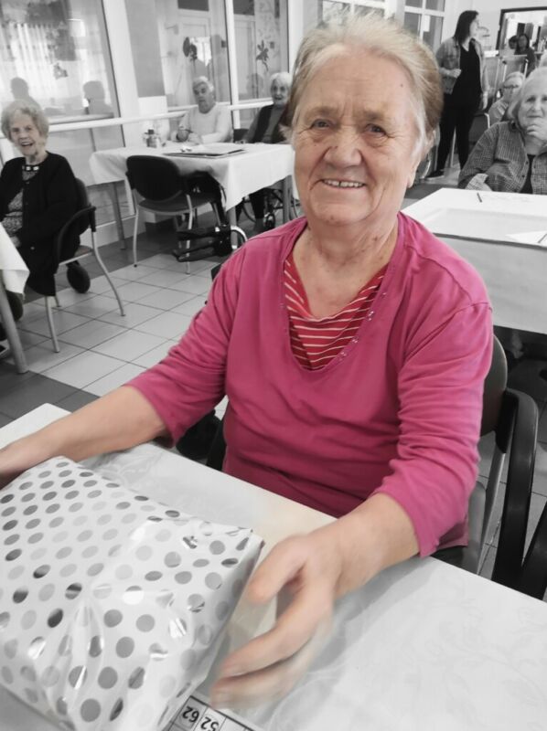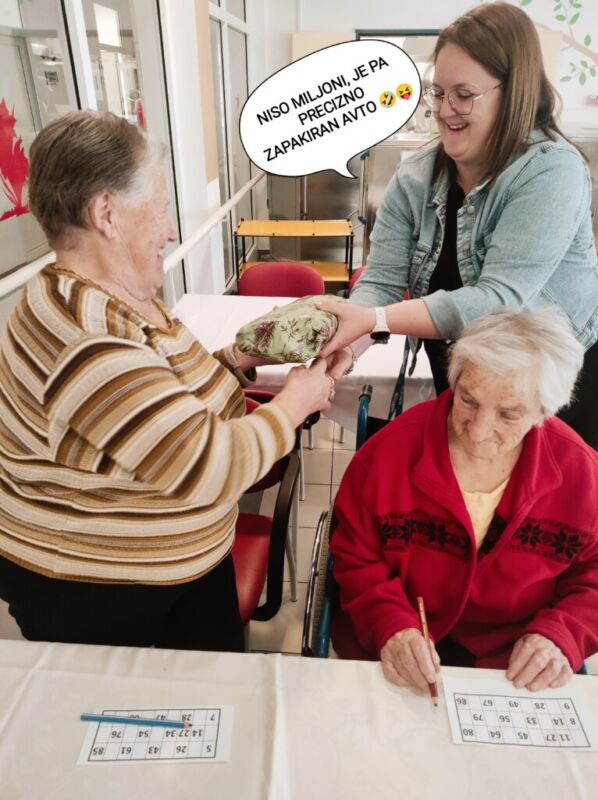 BINGOOO! Včeraj je pri nas ponovno potekala težko pričakovana in zelo priljubljena tombola. Stanovalci so bili še verjetno pod vtisom rezultatov znane igre na srečo, kjer je glavni dobitek prejel ravno Slovenec – ugotovili so, da kdor ne igra ne more dobiti, zato so si hitro rezervirali prostor in povlekli listek s številkami. Tokratna tombola je bila še toliko bolj “ekstra”, saj jo je vodila kar naša direktorica, ga. Barbara Virant. Sreča je bila tokrat namenjena kar štirim stanovalcem, med njimi tudi gospe, ki je menda kakršno koli nagrado zadela prvič v življenju – in kaj je glavni moto tega? Za srečo nikoli ni prepozno, le poskusiti moramo.