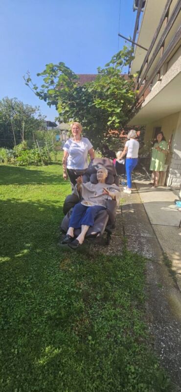 Na prijazno povabilo svojcev, ki imajo v Centru starejših Črnuče svojo mamo, smo se stanovalci z veseljem odpravili na obisk k njim na domači vrt. Tam nas je pričakalo sončno jutro, vonj po sveže skuhani kavi in iskren nasmeh gostiteljev. Ob kavi, domačem pecivu in prijetnem klepetu so se spletle nove zgodbe in obudili lepi spomini. Za nekaj ur smo se preselili v mirno, zeleno okolje, kjer se je čas zdel počasnejši, družba pa še toplejša.