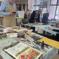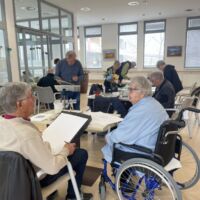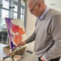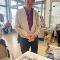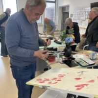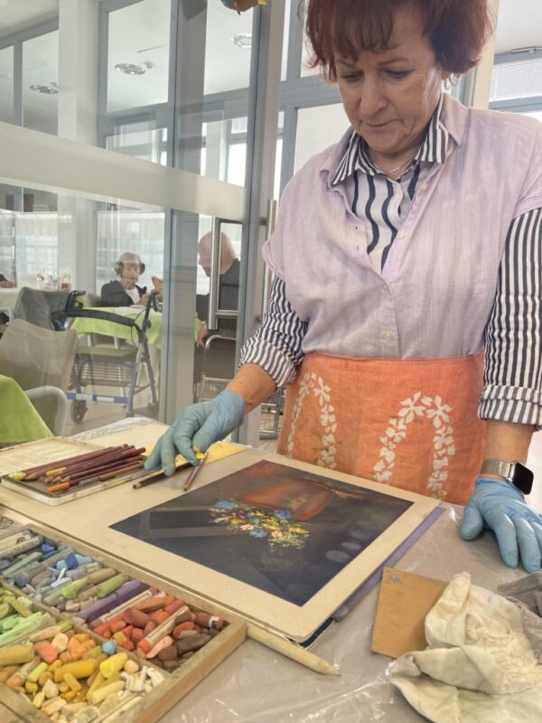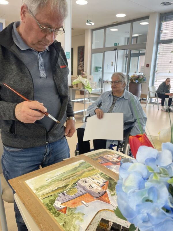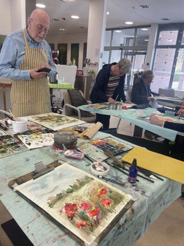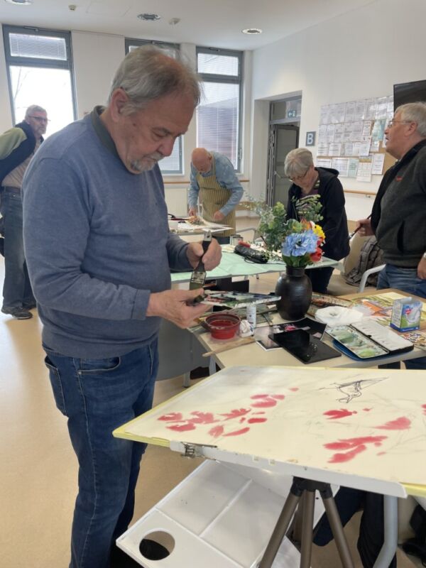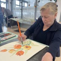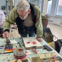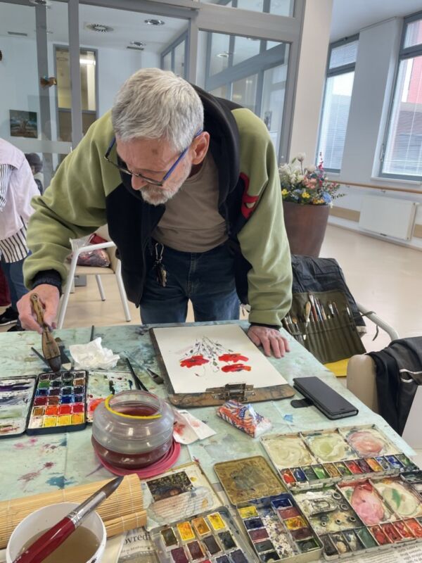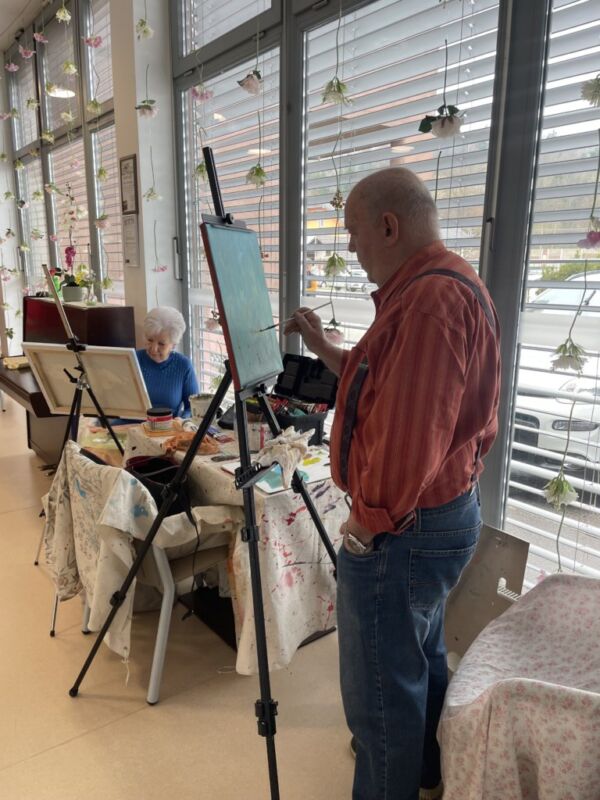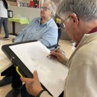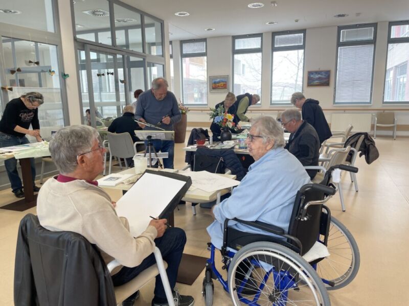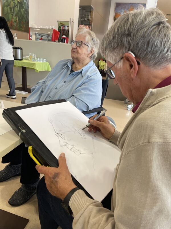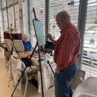 Danes so bili stanovalcem v navdih posebni gostje, ki so se udeležili likovne delavnice, ki je potekala v recepciji centra. Obiskali so nas člani likovne sekcije kulturno-umetniškega društva Ljubljanskega UKC-ja Leona Koporca, ki delujejo pod vodstvom Janeza Kovačiča. Z različnimi tehnikami, od akrila do prevladujočega akvarela, so upodabljali različne motive. Namen takšnega skupinskega slikanja oziroma slikarskih kolonij je predvsem prijetno druženje in izmenjava slikarskih izkušenj. Ob spremljanju umetniškega procesa so se naši stanovalci spoznali s slikarskimi tehnikami, tisti, ki so želeli, so lahko pozirali in dobili svoj portret. Navdušeni, tako stanovalci kot člani likovne skupine, so se strinjali, da delavnico kmalu ponovijo.