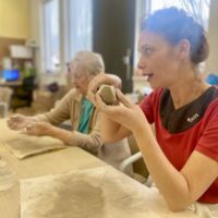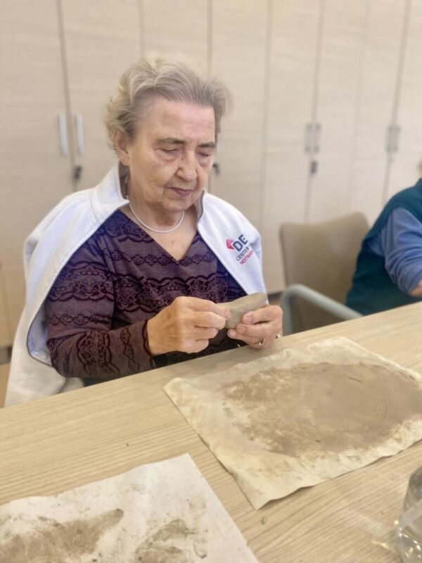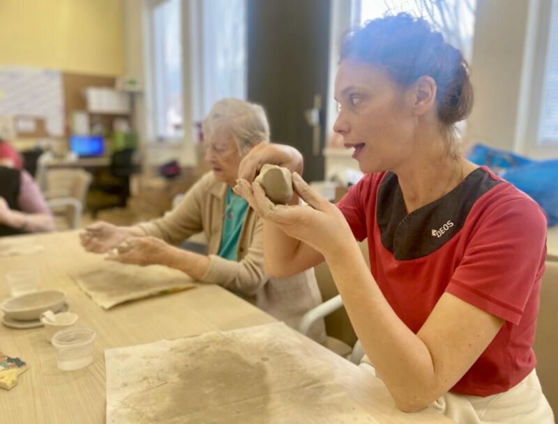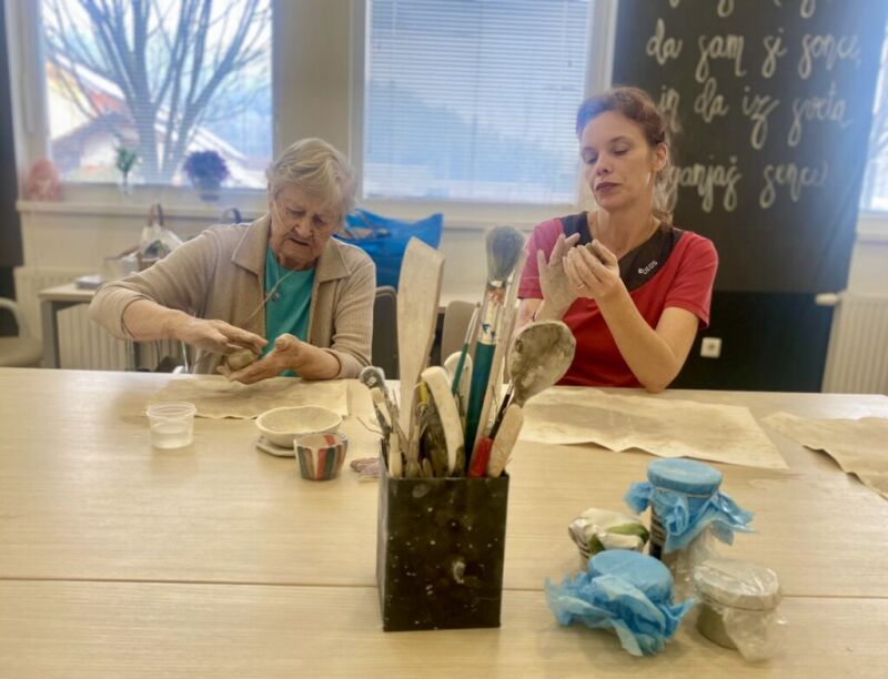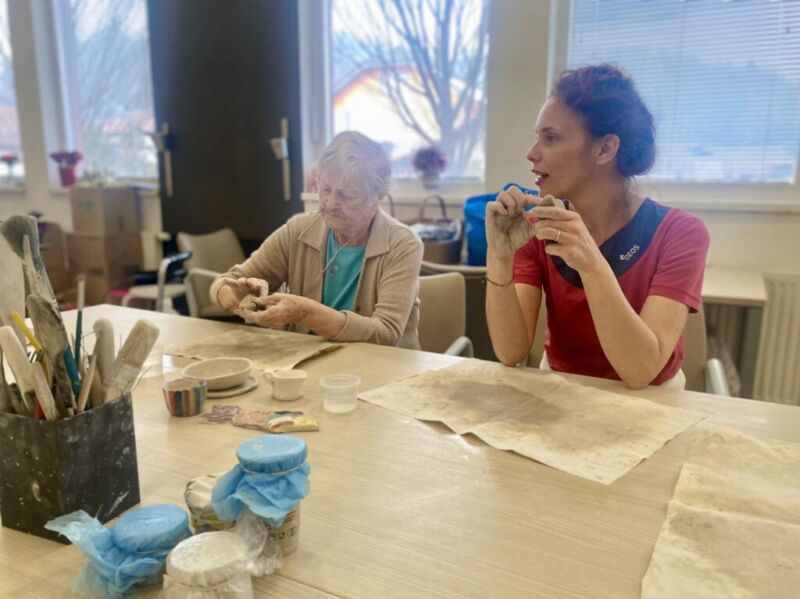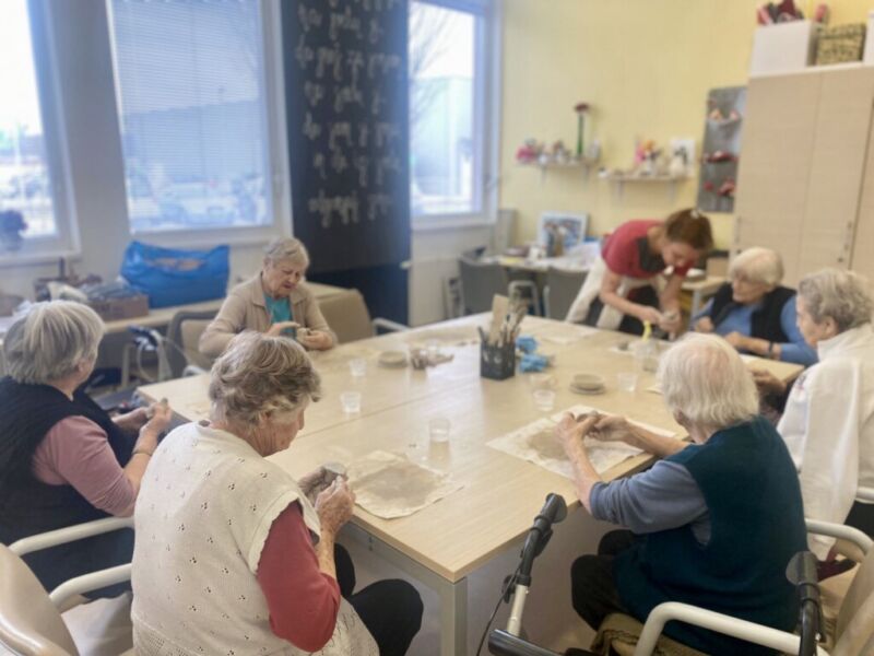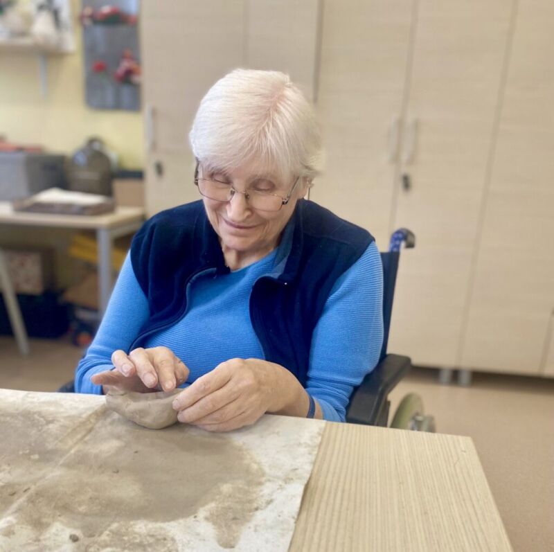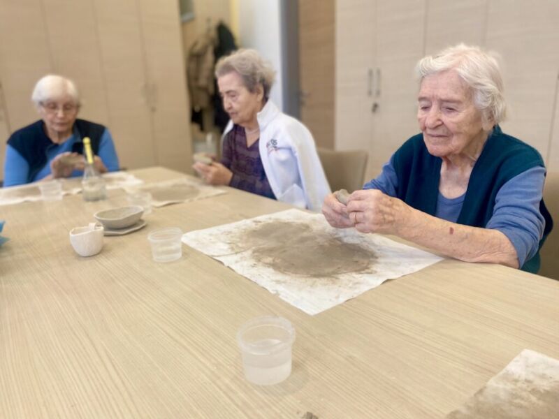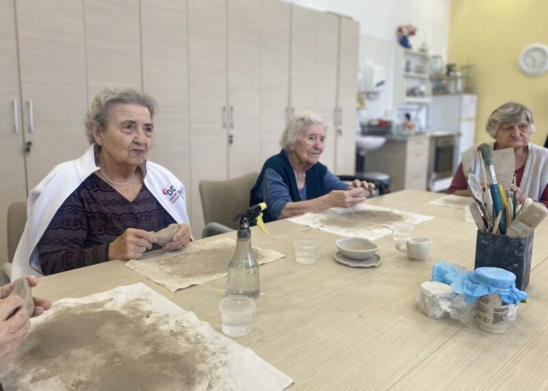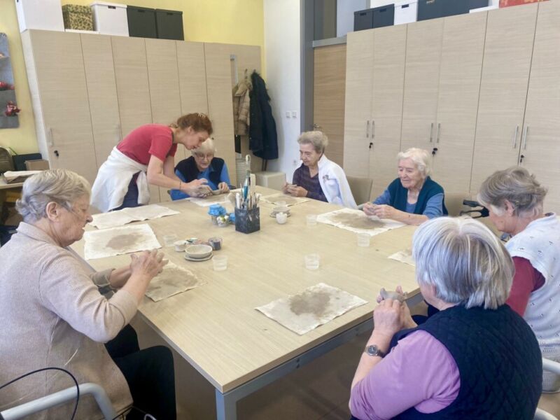 Oblikovanje z glino v našem centru poteka enkrat tedensko. Stanovalci ob pripravi in gnetenju razvijajo kreativnost, se sproščajo ter urijo svoje ročne sposobnosti. Pod budnim očesom Katarine se postopoma spoznavajo z različnimi tehnikami, saj je namen delavnice predvsem terapevtski, velikokrat pa nastanejo tudi čudoviti izdelki. Vsak teden se jim pridruži kakšen nov član, ki se z veseljem poda v ustvarjalni svet gline.